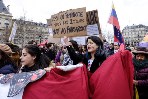 Place de la République à Paris, environ mille personnes se sont réunis pour marquer la journée des droits de la femme. Tandis que des militants anti-porno ont mené une action provocante en jetant de la peinture rouge sur deux jeunes femmes dénudées, d'autres groupuscules féministes scandent des slogans et distribuent des tracts.