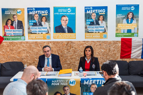 Erwan Davoux, candidat aux municipales à Marseille, a dévoilé le programme de 'Marseille pour tous" aux côtés de son binôme, et co-listière, Nora Preziosi.