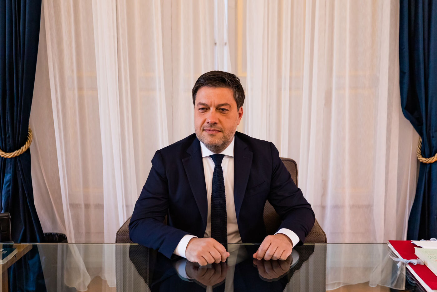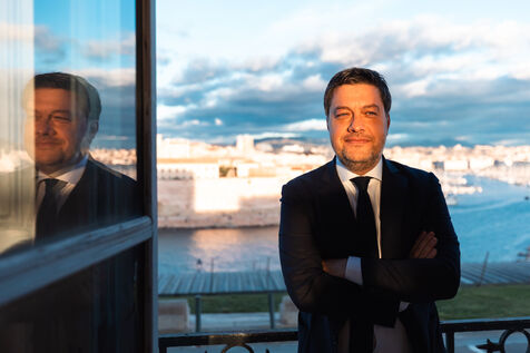Portrait of Benoit Payan, mayor of Marseille since 2020 and lead candidate in the 2026 municipal elections for the left-wing coalition Printemps Marseillais.