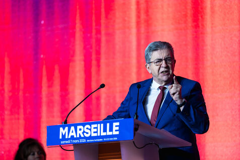Jean-Luc Melenchon, surrounded by Manuel Bompard and several candidates for local council seats, was there to show his support.