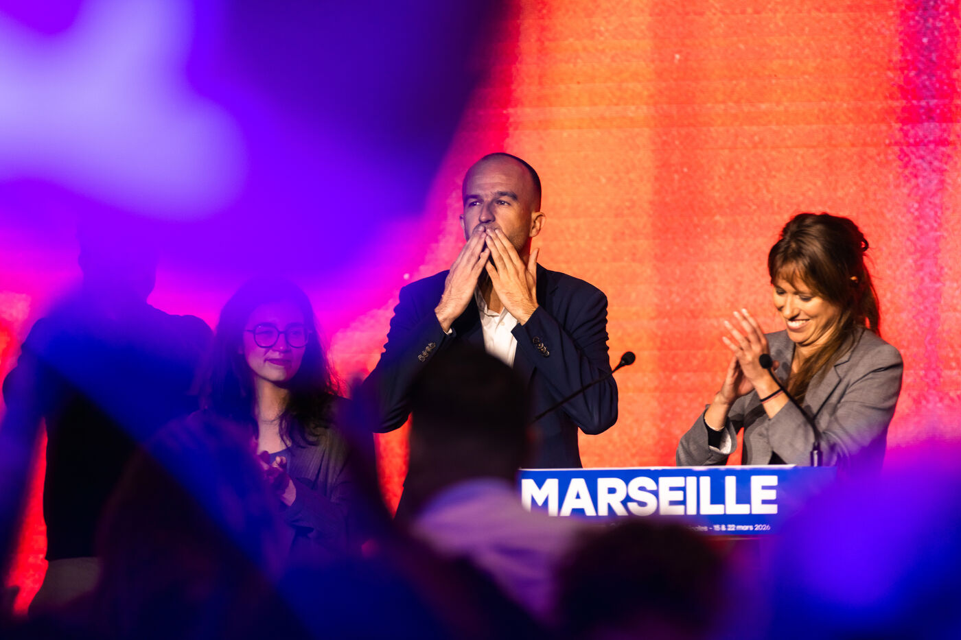 Sébastien Delogu, député de La France Insoumise - Nouveau Front Populaire et candidat aux municipales à Marseille était en meeting de campagne, à la Friche de la Belle de Mai, quelques jours avant le premier tour des élections municipales.