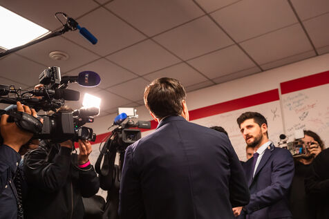 Soirée électorale au QG de campagne du Printemps Marseillais et prise de parole de Benoît Payan, maire de Marseille depuis 2020 et tête de liste aux élections municipales de 2026 pour la coalition de gauche, à l'issue des résultats du premier tour des élections municipales