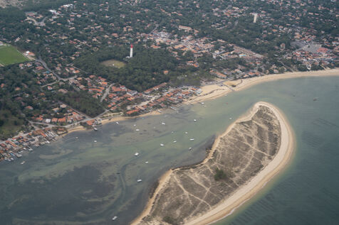 Photographs taken aboard a Cessna 172 plane during an aerial flight over the Arcachon Bay and the town of Saint-Émilion in southwestern France. This series offers an aerial perspective on iconic landscapes, from the Atlantic coastline and oyster huts to vineyards and historic architecture. The images highlight the geography, natural textures, and territorial patterns as seen from above.