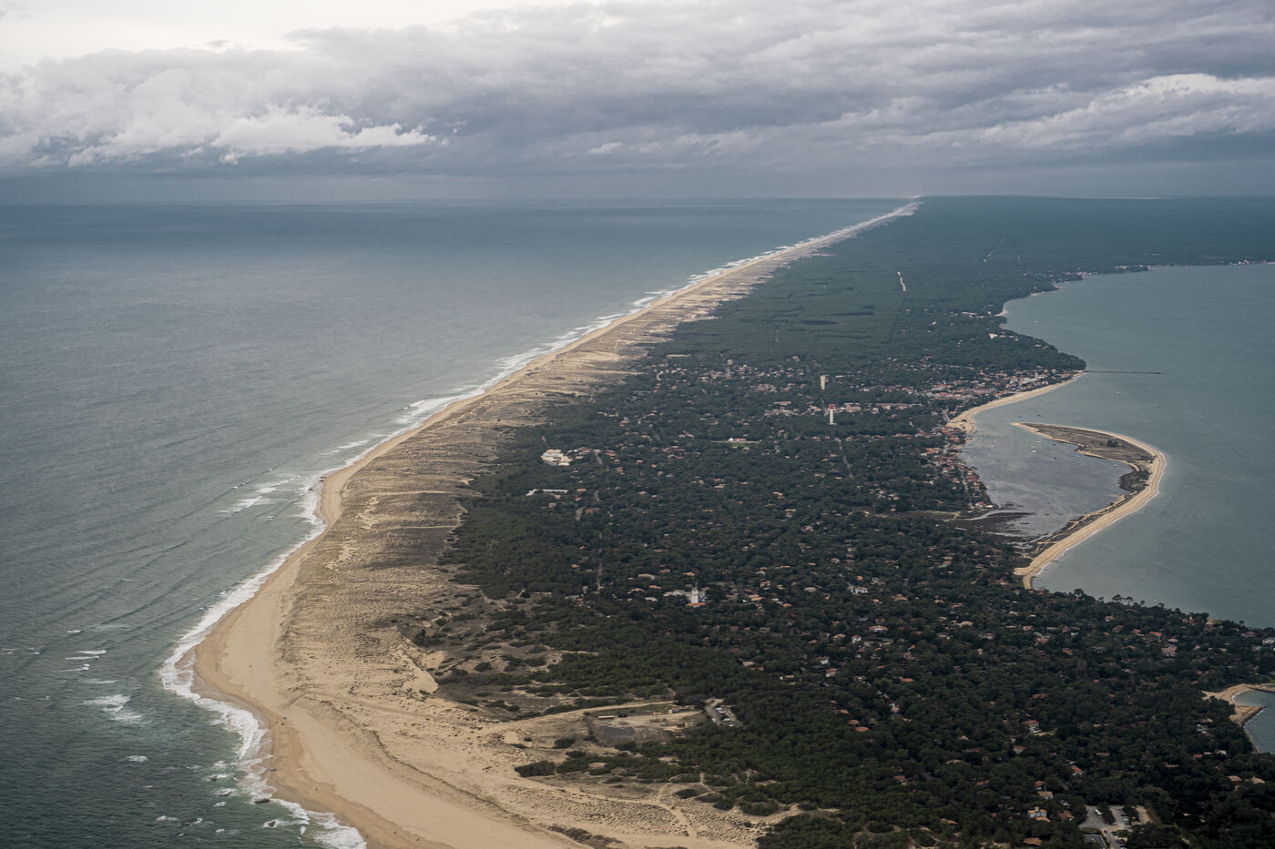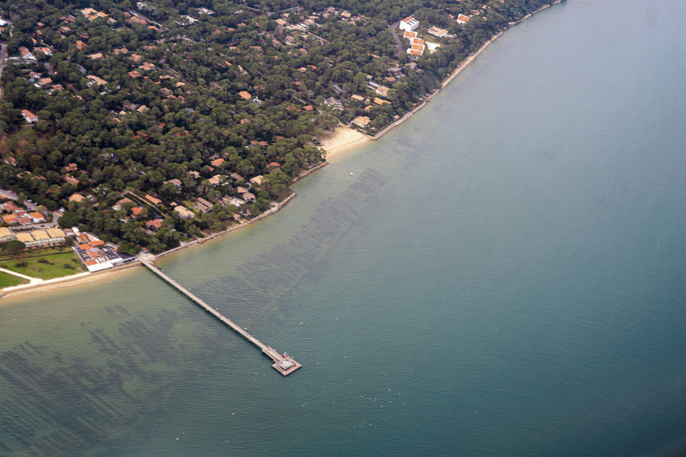 Photographies réalisées à bord d’un avion Cessna 172 lors d’un vol au-dessus du bassin d’Arcachon et de la ville de Saint-Émilion. Cette série propose une lecture aérienne des paysages emblématiques du Sud-Ouest, entre littoral atlantique, cabanes ostréicoles, vignobles et patrimoine architectural classé. Les images mettent en perspective la géographie, les textures naturelles et l’organisation du territoire vues depuis le ciel.