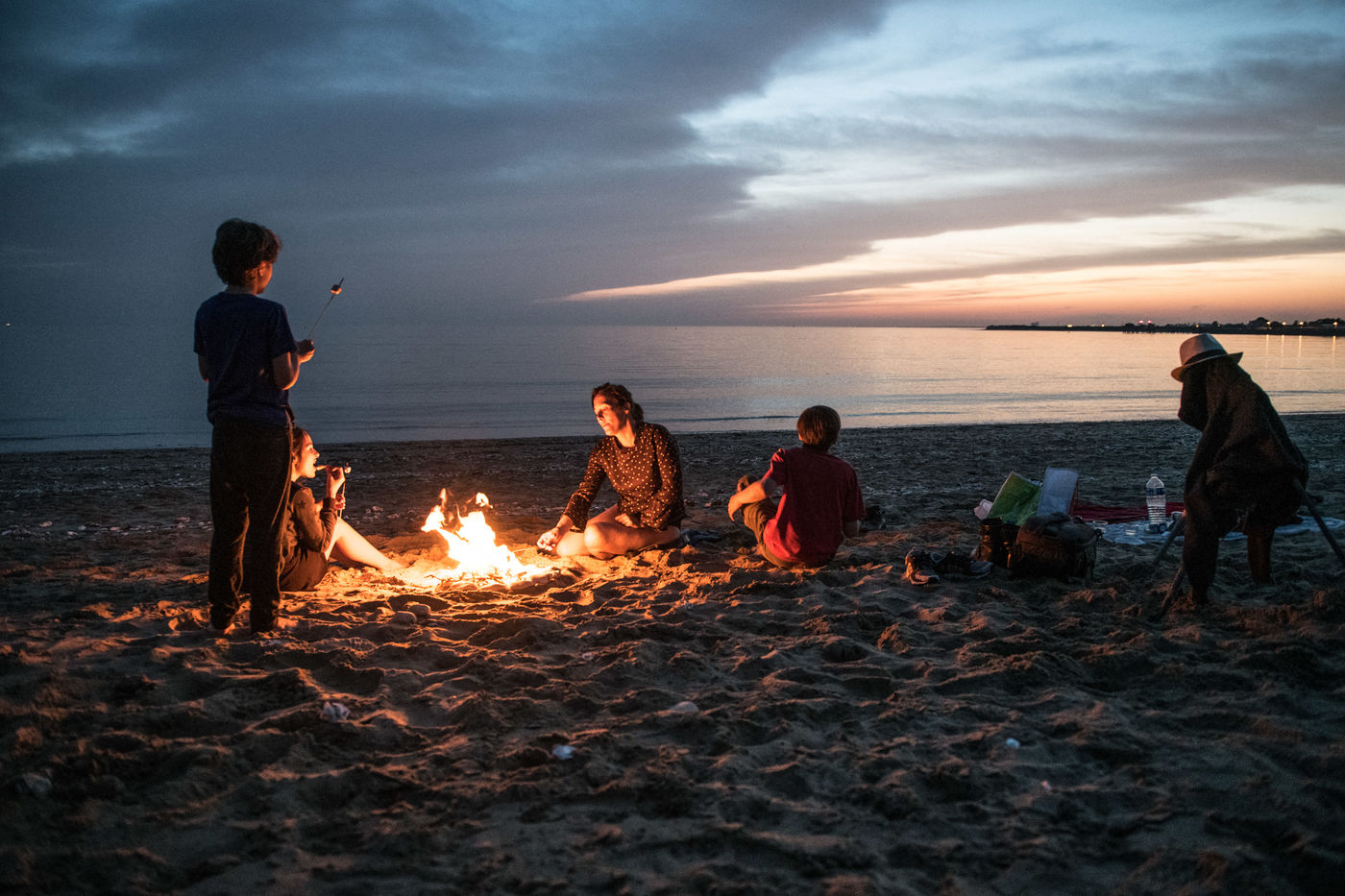 Feu plage et chamalow