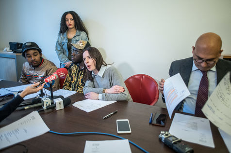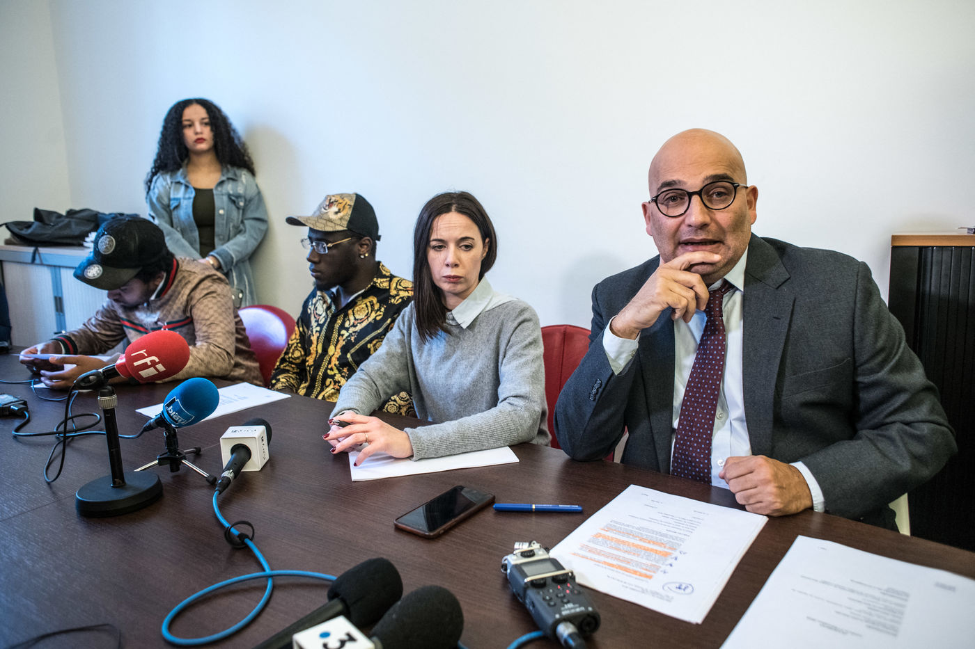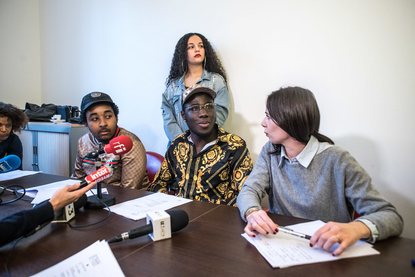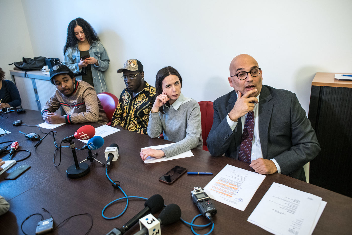 17 décembre 2018 Paris . Conférence de presse au cabinet de l'avocat Slim Ben Achour. Il est le conseil de Ilyas Haddaji , Zakaria Hadj Mmadi , Mamadou Camara élèves du lycée Louise Michel à Epinay et de leur professeur Elise Boscherel Deniz qui ont porté plainte contre la police pour " controle au facies". Le verdict tombe ce jour, ils sont déboutés