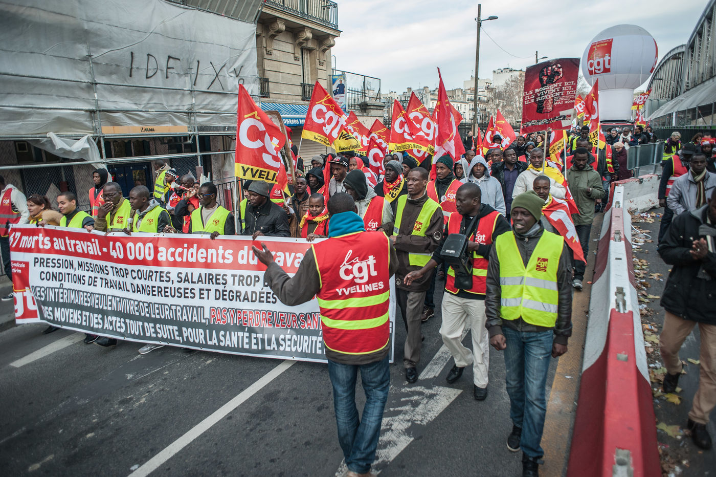 5 decembre 2015 Paris - Manifestation contre le chomage et la précarité place Stalingrad a l'appel des organisations de chomeurs , AC! ,APEIS , CGT , MNPC.