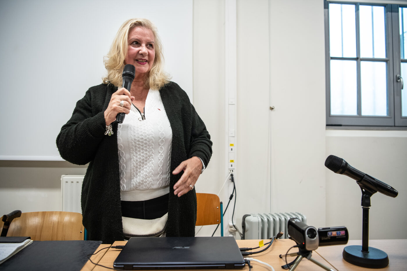 25 November 2024 Fontaineblau lycée François premier; Elena Alfaro, survivor of the El Vesubio torture camp. She was received at the Lycée Frnaçoi 1er in Fontaineblau to meet students, tell them her story and exchange ideas.