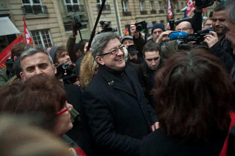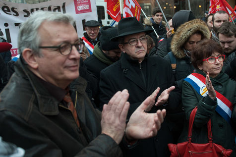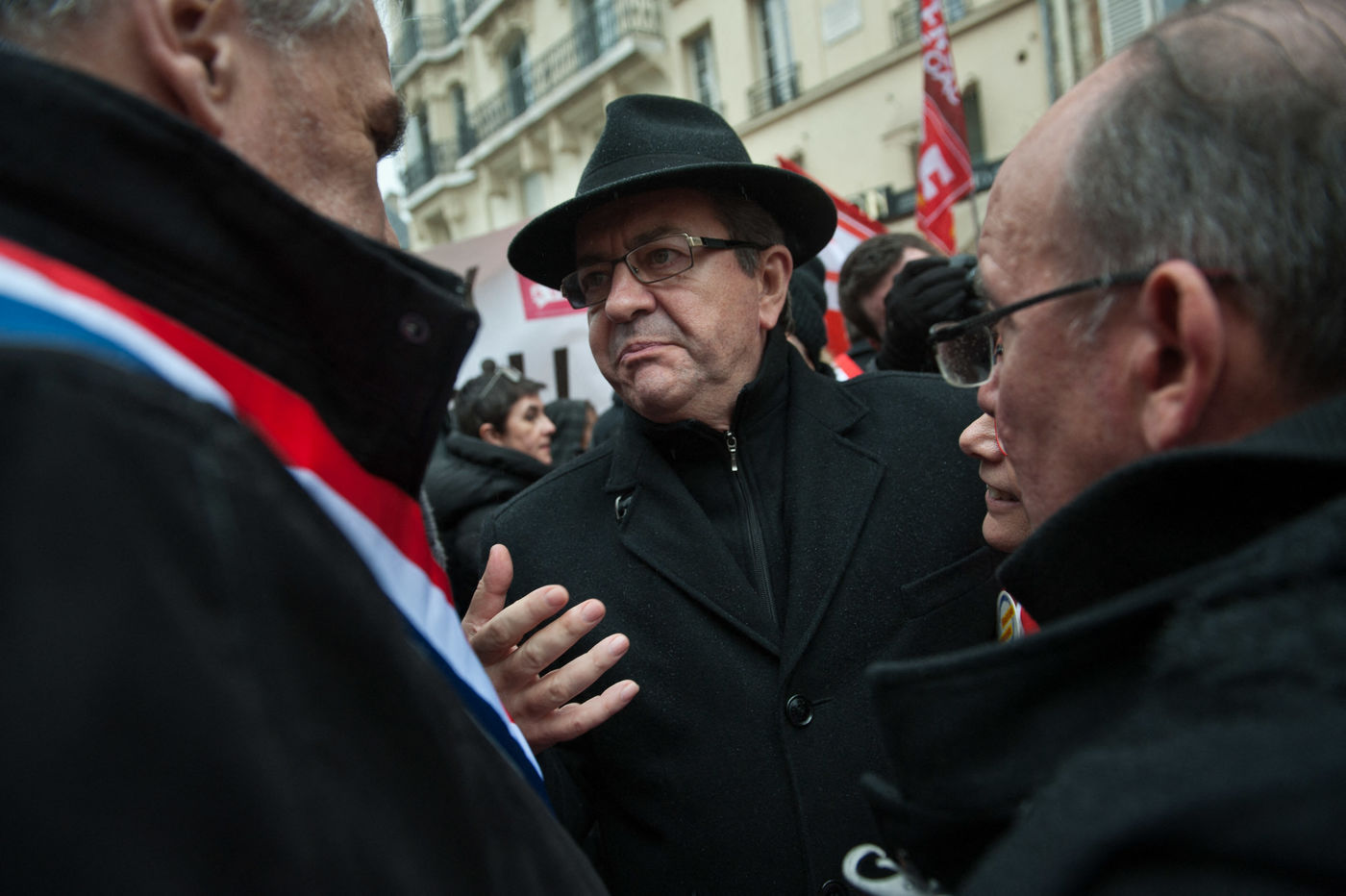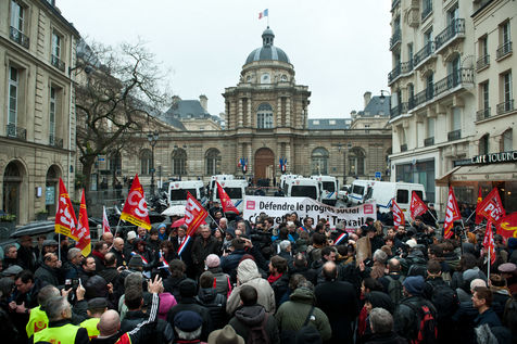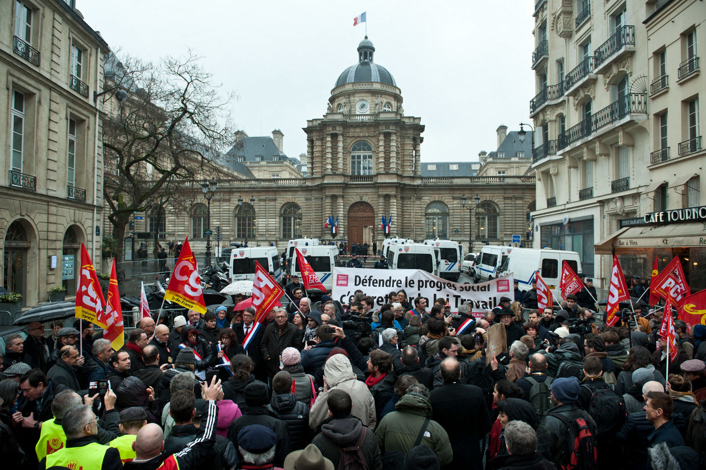 11 janvier 2017. Paris.Rassemblement devant le Senat à l'appel de la CGT pendant qu'est examiné au sénat un projet de loi, déposé par les sénateurs communistes, pour l'abrogation de la loi El khomri.
