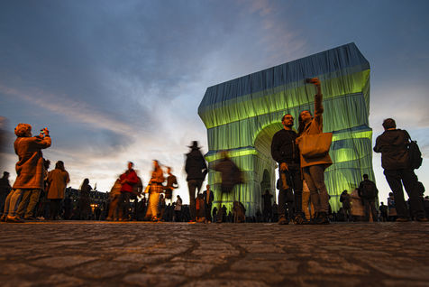 On the last day before its removal, Parisians go to the Arc de Triomphe to admire the new temporary work of Christo and Jeanne-Claude.