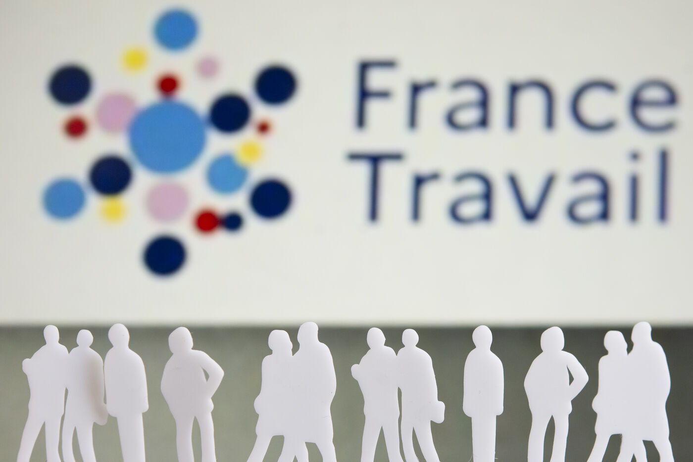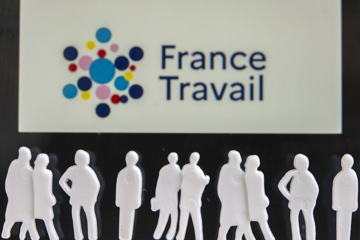 Paris, France : 03/31/2025 : Illustration of France Travail, a public administrative establishment (EPA) in charge of employment in France. Photograph by Joao Luiz Bulcao / Hans Lucas.
