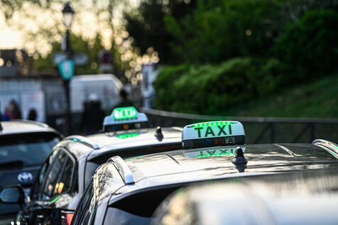 Illustration d'un taxi parisien, dont le voyant lumineux est vert, indiquant qu'il est libre.