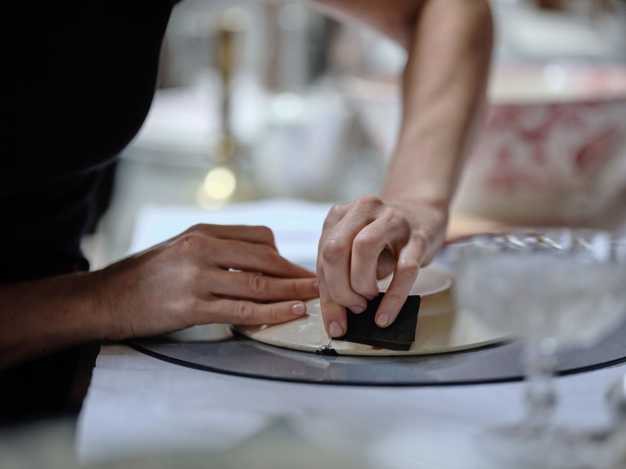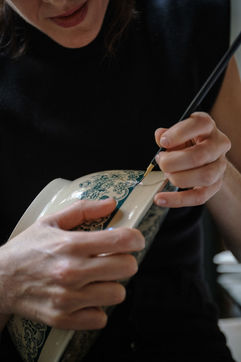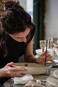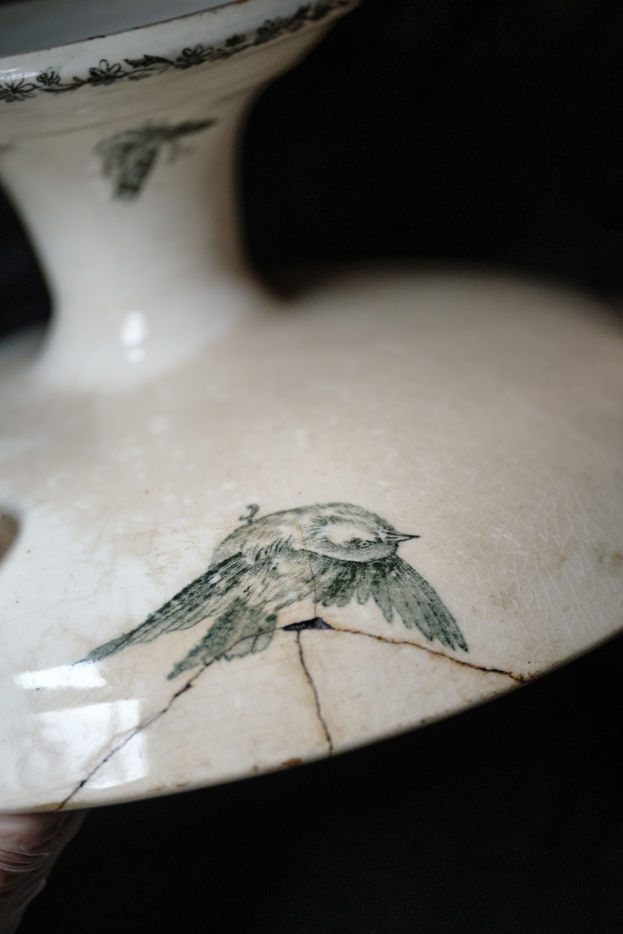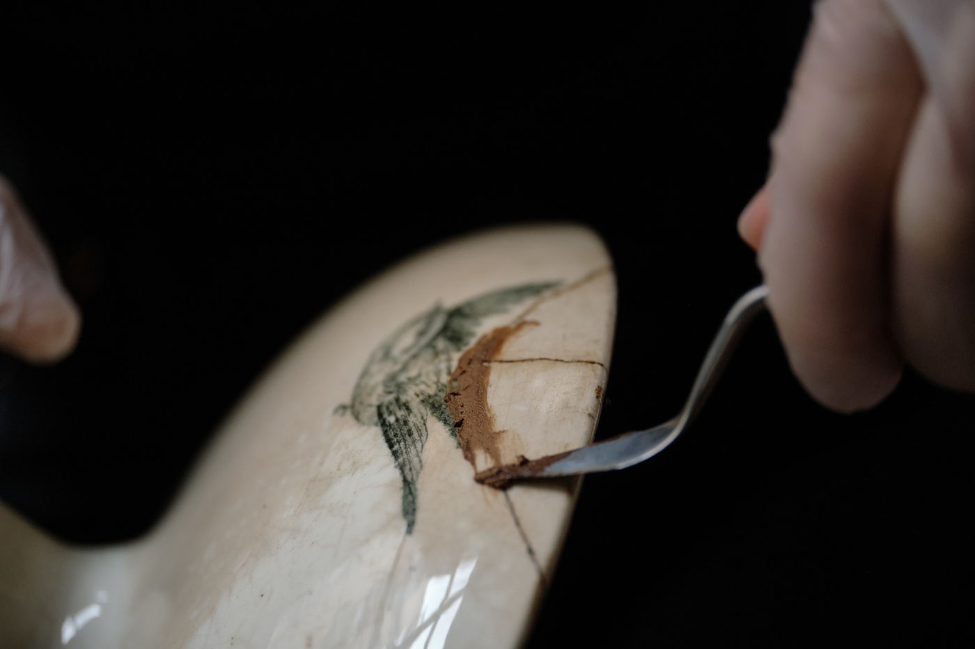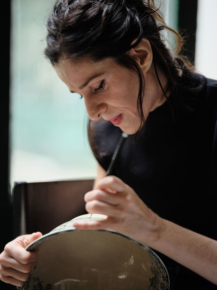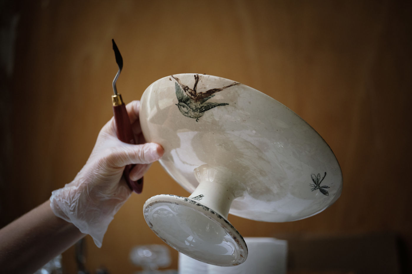 Immersion in the workshop of Cécile Viarouge, founder of Blanche Patine, who specialises in the sale of "Terre de Fer" tableware (late 19th century - early 20th century), which she hunts down and repairs as needed using the Japanese Kintsugi method.