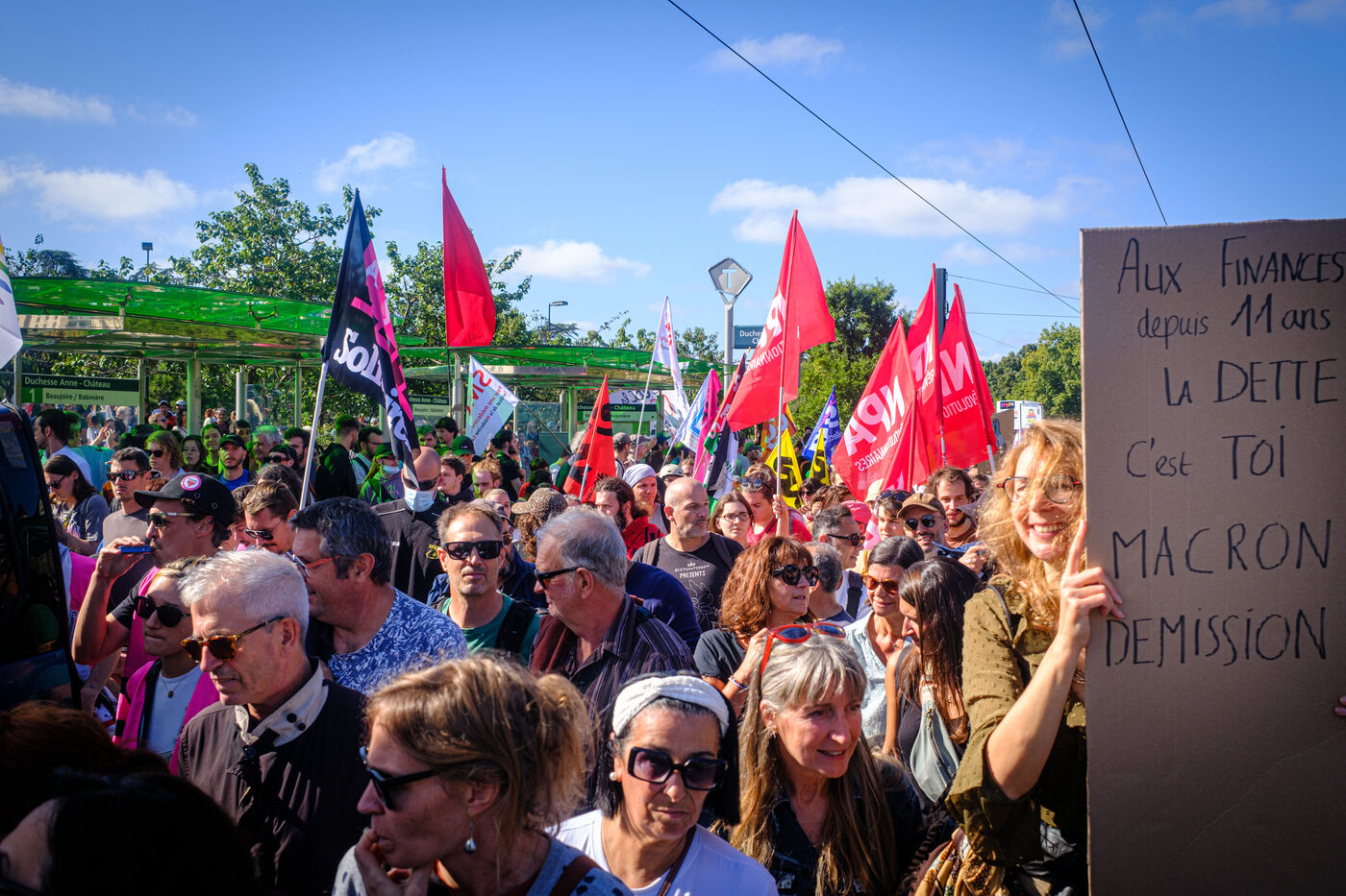 Des milliers de personnes ont manifesté dans les rues de Nantes le 18 septembre 2025 lors de la mobilisation nationale contre les mesures d’austérité budgétaire du gouvernement à l’appel des principales organisations syndicales.