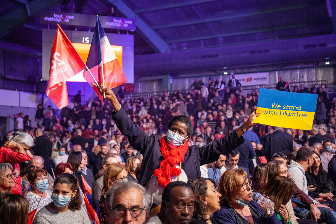 Meeting d'Anne Hidalgo, maire de Paris et candidate du Parti socialiste PS à l'élection presidentielle d'avril 2022, à Toulouse en Occitanie le 26 mars 2022