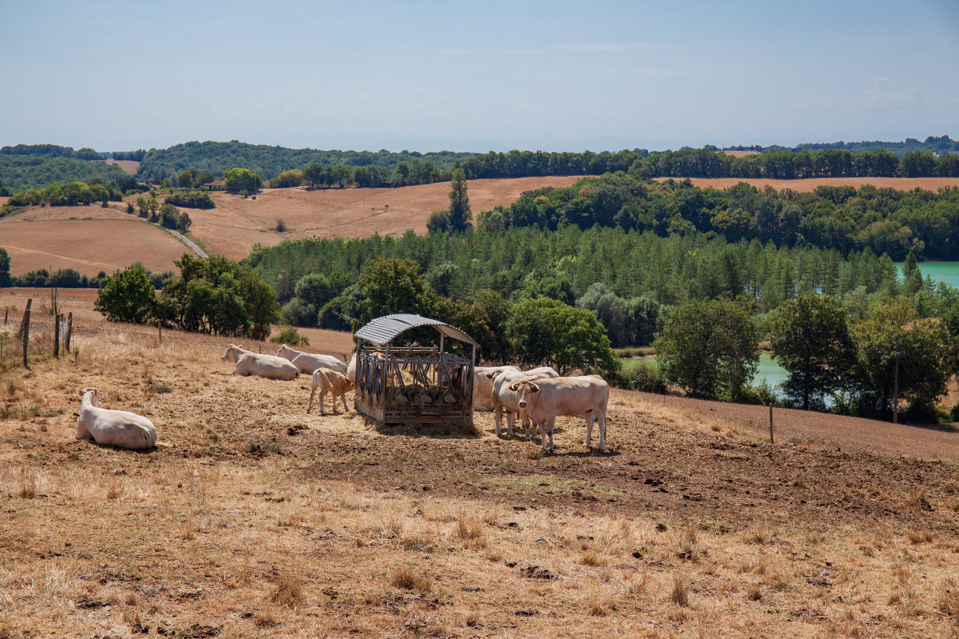 Sècheresse, troupeau de vaches dans la campagne gersoise