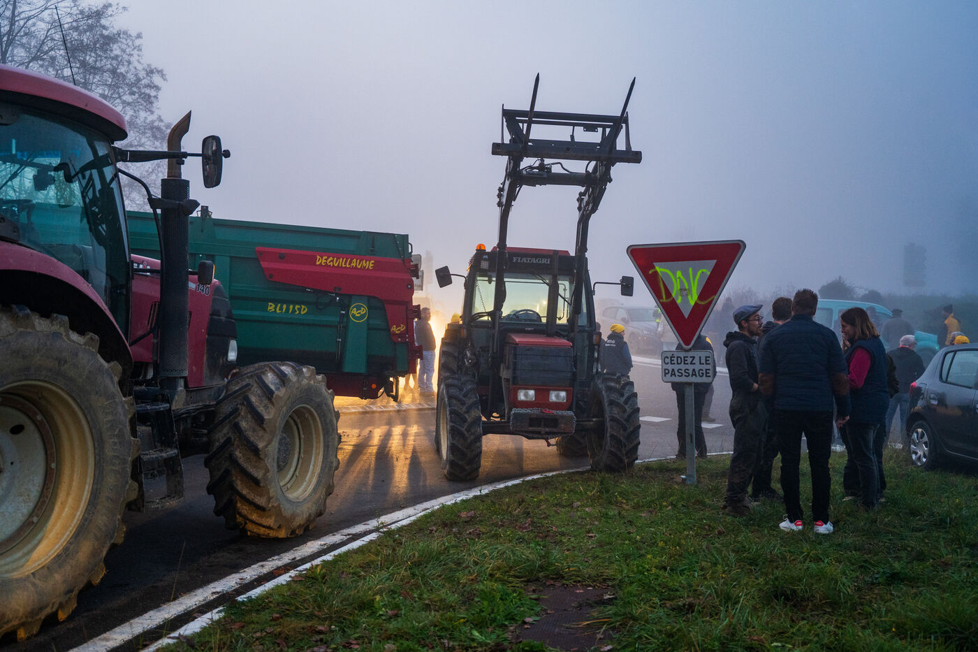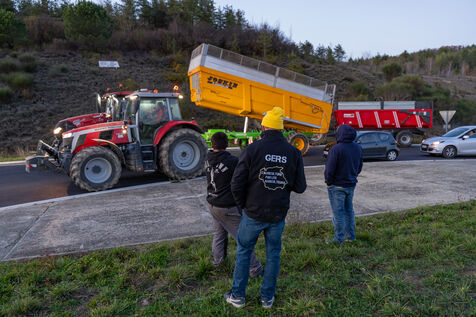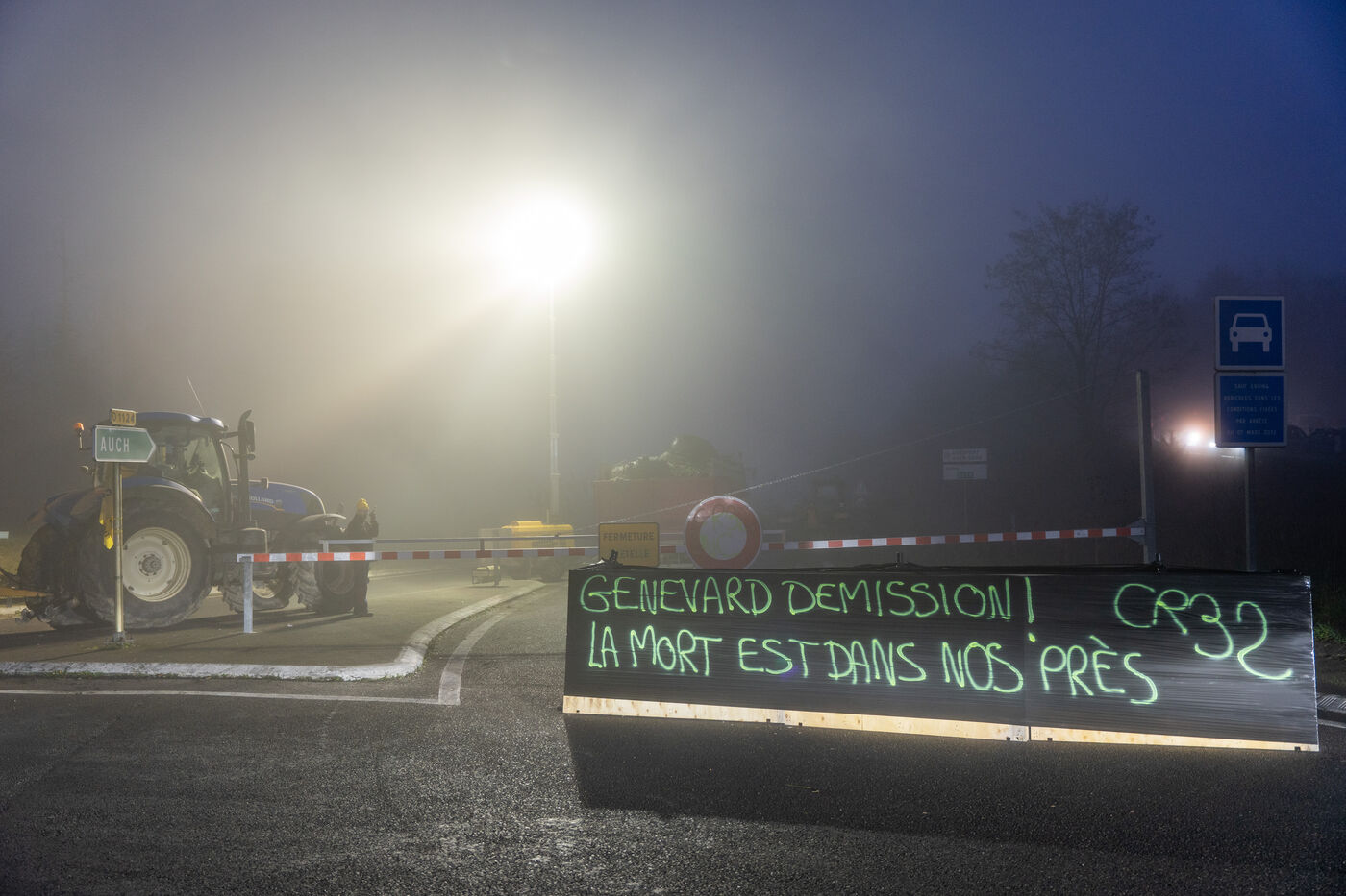 Manifestation des agriculteurs, blocage des ronds-points à l'entrée d'Auch, la colère des agriculteurs refait surface, en lien avec la dermatose nodulaire contagieuse ou dermatose bovine traitée par l’abattage du bétail.