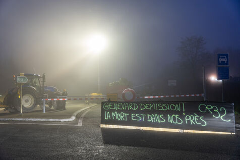 Farmers protest, blocking roundabouts at the entrance to Auch, as anger resurfaces over contagious nodular dermatitis, or bovine dermatosis, which is treated by slaughtering livestock.