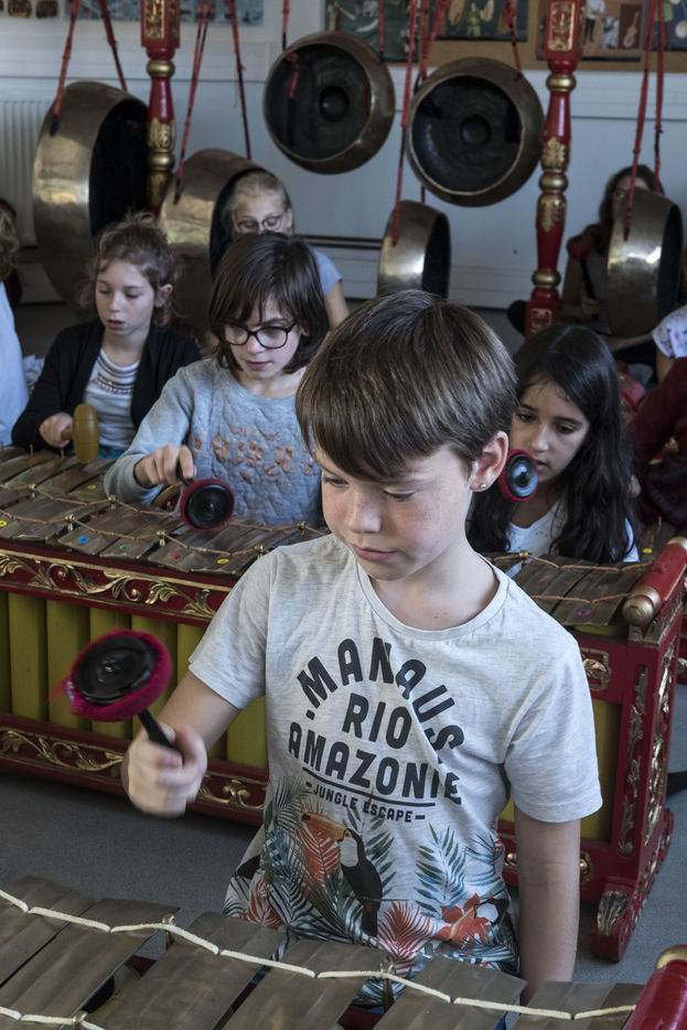 Une professeure de musique a enseigné le Gamelan, un instrument indonésien aux élèves de son collège.