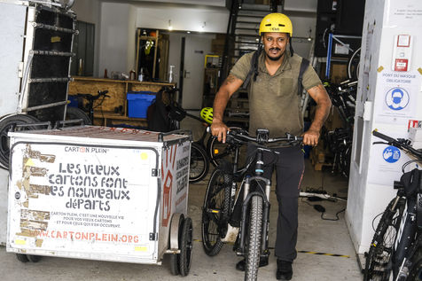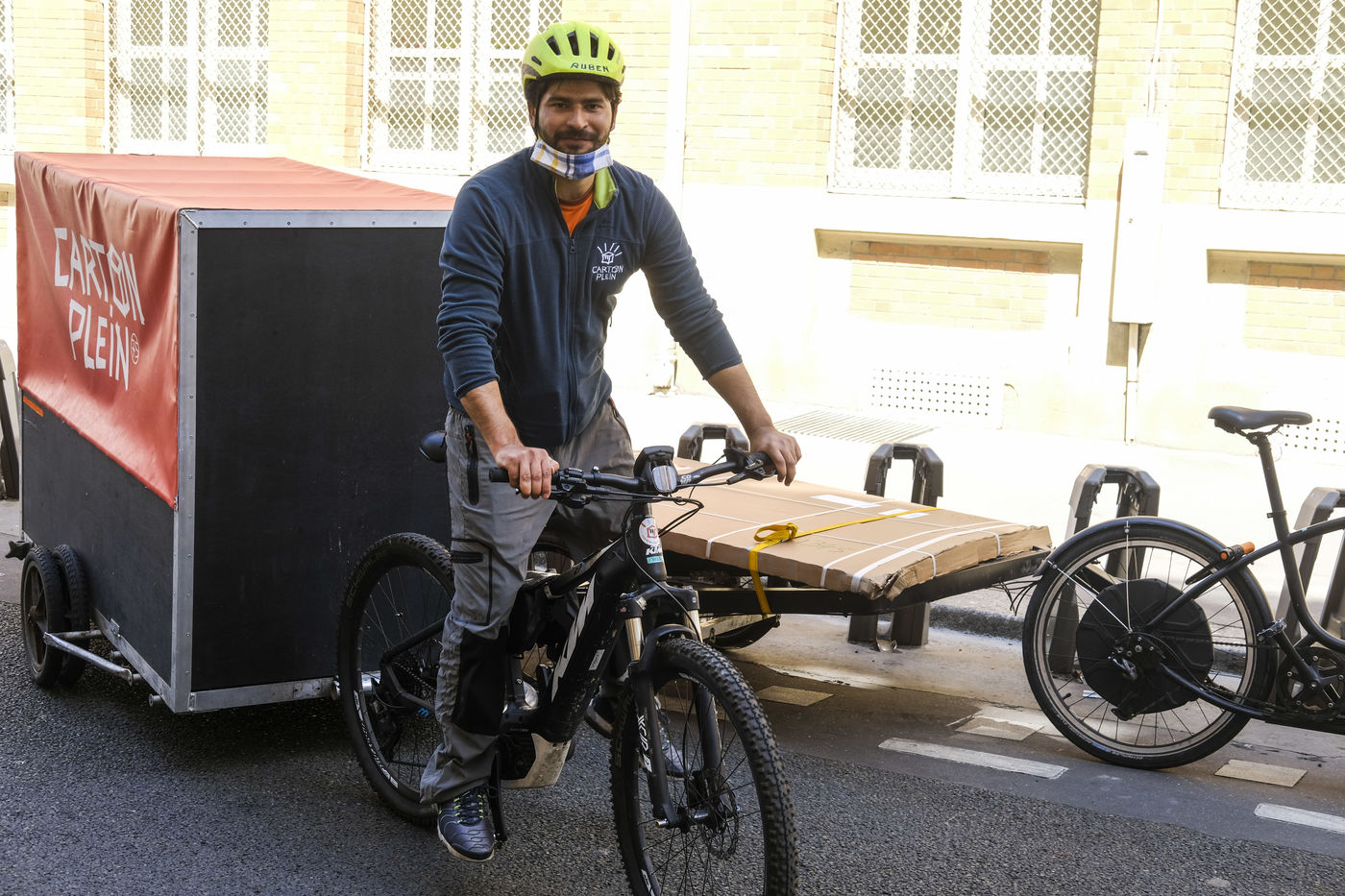 Initially, a cardboard recycling project to help people in very precarious situations find their way back into employment. Then, one thing led to another, a bicycle moving service. The Carton Plein association, born in 2012, is a social and ecological project, the result of a meeting and friendship between a manager and a person living on the street. Both had the idea to transpose the model of the biffins. There, it is a question of recovering the cardboards from private individuals or companies and stores. You can find cardboard boxes everywhere. And often they are used only once before going to the waste disposal. The idea is quite brilliant. Recycle the boxes so that they can be used once or twice. Or more. But it can also create jobs. Especially for those who are furthest from the world of work. The excluded among the excluded: The homeless. When the project was created, the bicycles and their trailers were only used to transport the cardboard collections and to deliver to customers. Since 2018, an integration company has been in operation. Its activity: Cyclo-logistics. Deliveries for caterers, distribution of meals to the homeless for the Paris City Hall and the flagship activity, moving. The company currently has ten employees in integration.