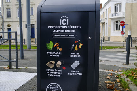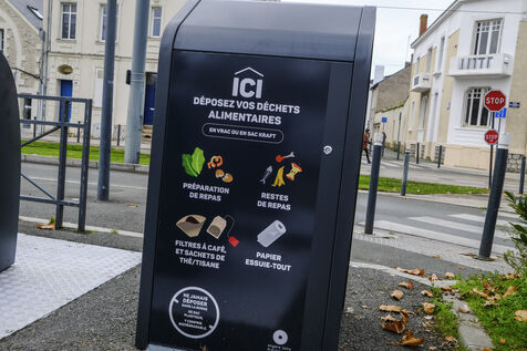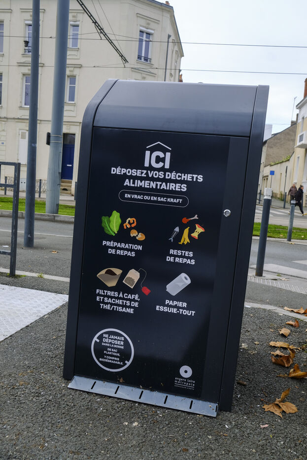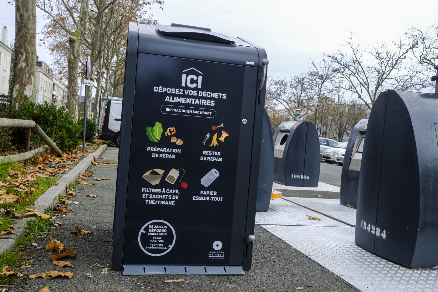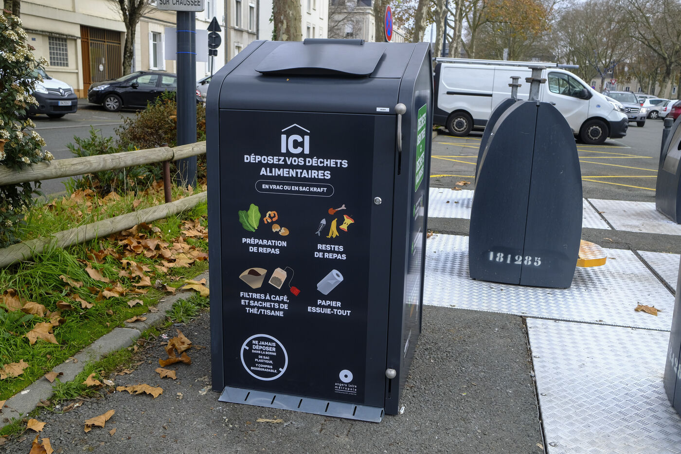 FRANCE, ANGERS. 30/11/2023. A partir du 1er janvier 2024, il sera obligatoire de trier ses biodechets. Les composteurs, qu?ils soient individuels ou collectifs, vont donc se multiplier. Et chacun devra se familiariser avec les regles à respecter. Les premiers composteurs ont ete installes à Angers.photographe: Jean-Michel DELAGE / Hans Lucas