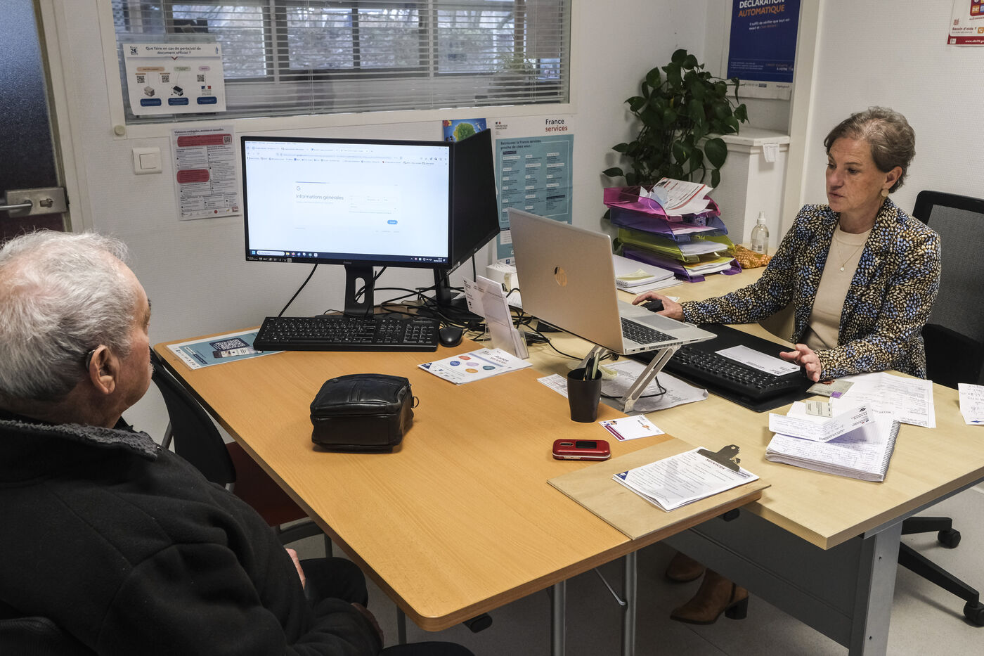 FRANCE, MAYENNE. 06 February 2025. France services is a network of more than 2,700 reception and support centres to help you with your day-to-day administrative tasks. Wherever you live, in town or in the country, the nearest France services centre is no more than 30 minutes away by car. For more than 9 out of 10 French people, the journey takes less than 20 minutes. Photographer: Jean-Michel Delage / Hans Lucas