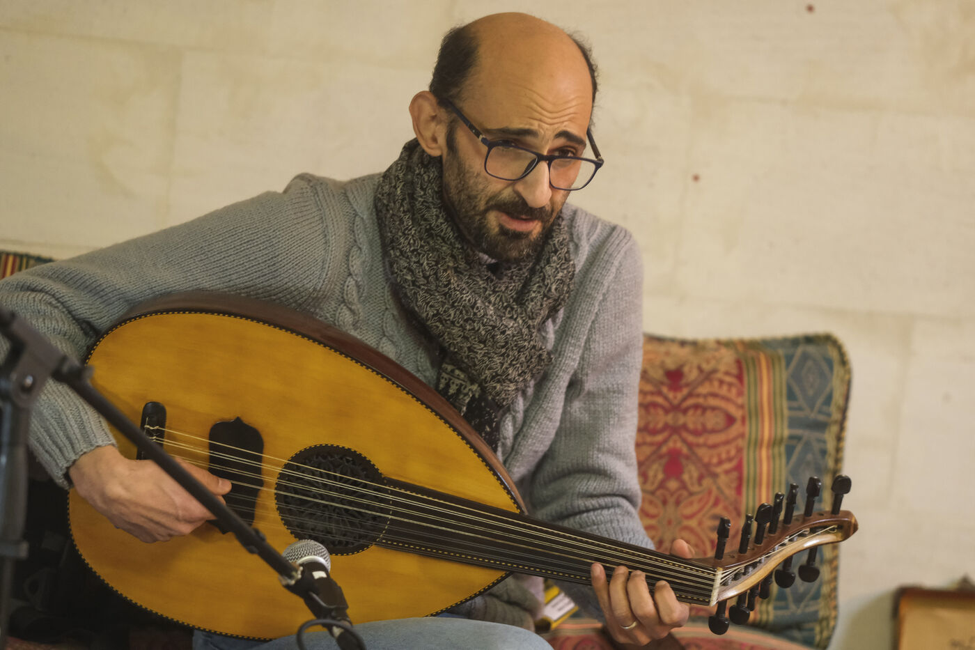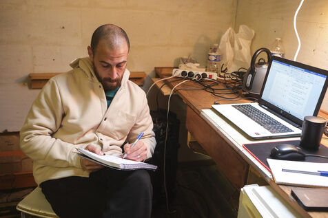 FRANCE, ANGERS. 11th may 2025. After fleeing Gaza, five Palestinian musicians and their families have been welcomed by the Al Kamandjati association in Angers since 9 January. These refugees will benefit from an artist's residency for a year thanks to the PAUSE programme, a national emergency reception programme for scientists and artists who can no longer carry out their work freely in their countries of origin, launched in 2017 by Collège de France.