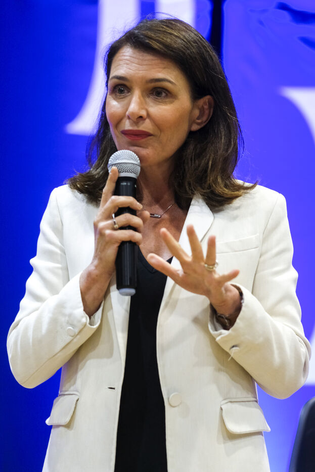 FRANCE, BAUGÉ. 26 JUNE 2025. Christelle Morançais, President of the Pays de la Loire region, meets the people of Maine et Loire. Photographer: Jean-Michel Delage / Hans Lucas.