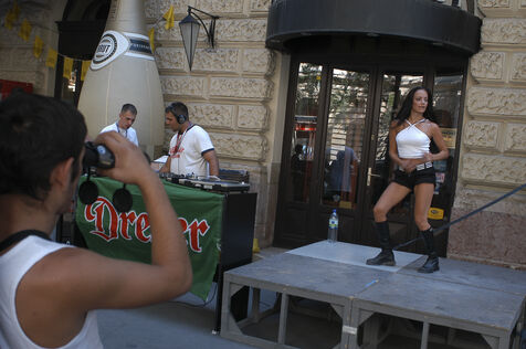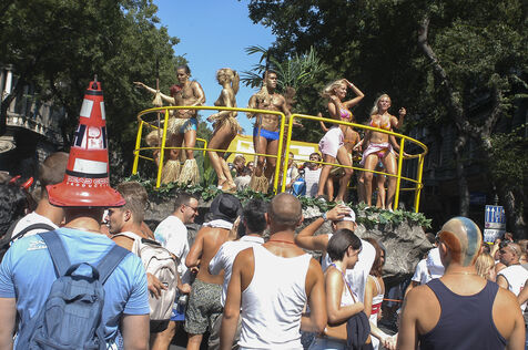 HUNGARY, BUDAPEST. 23rd June 2003. Love parade in Budapest. At the time, Hungarians were still living in a state of great freedom after the fall of the Wall. This big parade brought young people together. The LGBT community could come out and the anti-homosexuality laws were not in force. The streets of Budapest exuded freedom like never before. Photographer: Jean-Michel Delage