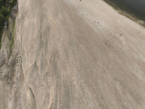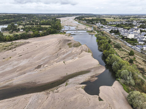 FRANCE, MAINE-ET-LOIRE. 1 September 2025. The Loire River in Maine-et-Loire. Some sections are now nothing more than sandbanks. A lack of water due to climate change is radically altering the river's appearance. Photographer: Jean-Michel DELAGE/Hans Lucas