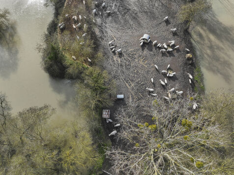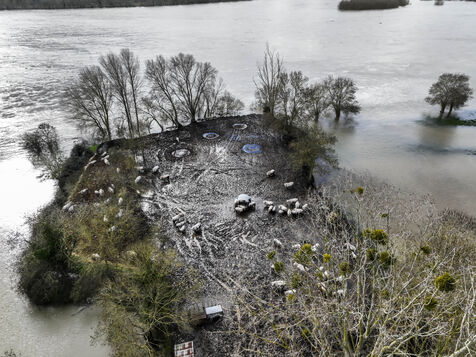 UN TROUPEAU DE VACHES ENCERCLÉ PAR LA LOIRE
