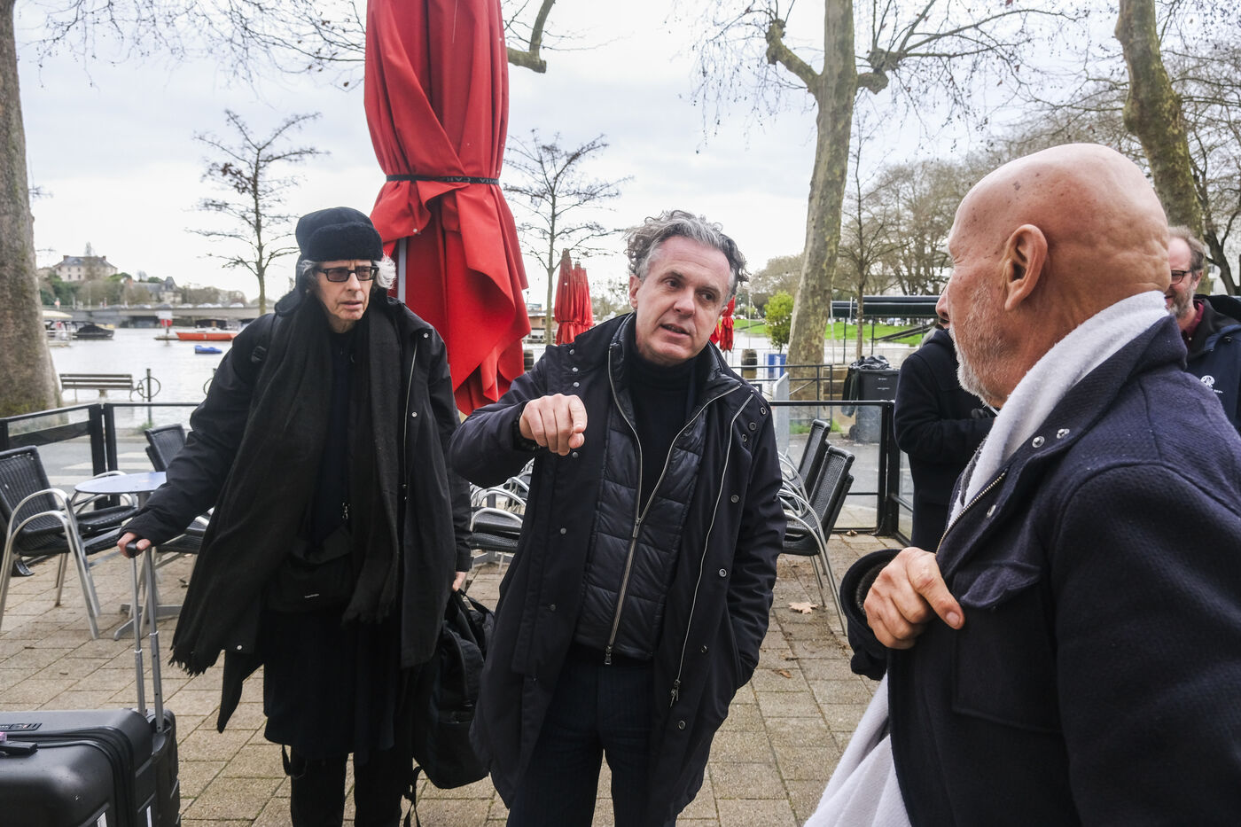 FRANCE, ANGERS. 19 février 2026. Le département du Maine et Loire est en alerte rouge. La Maine déborde. Christophe Bechu, le maire d’Angers, se rend dans le quartier de la Doutre pour rencontrer les habitants. Photographe: Jean-Michel DELAGE/Hans Lucas