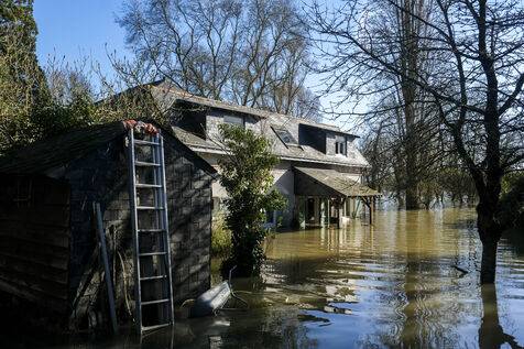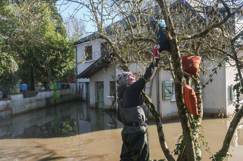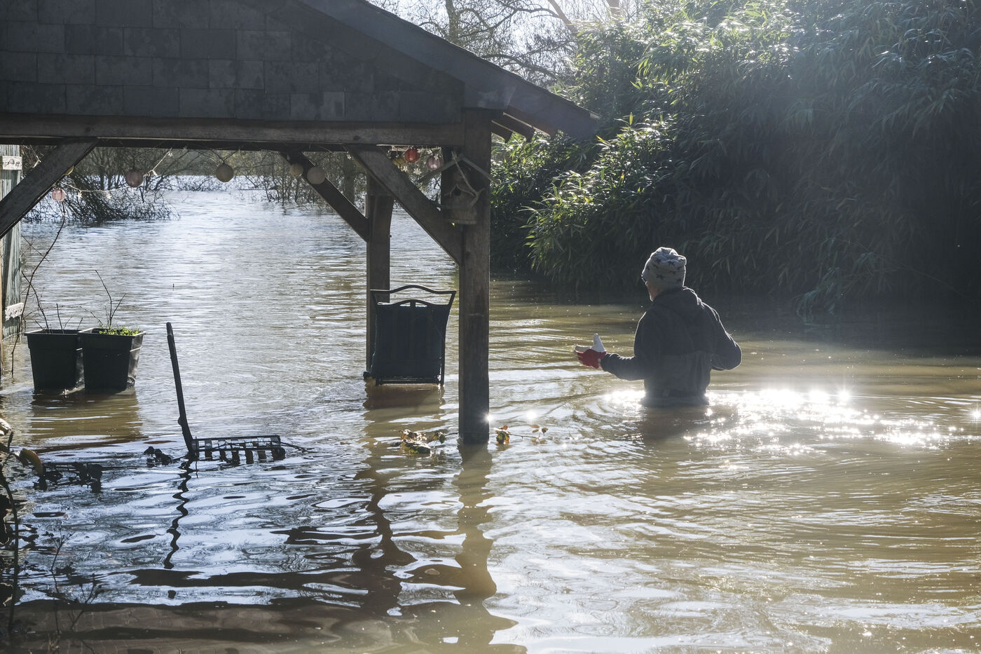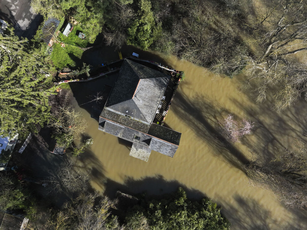 FRANCE, BRIOLLAY. 24 February 2026. The village of Briollay, Maine-et-Loire, is still flooded. Niobé, a musician, saw his music studio inundated by water. Fortunately, he had time to remove his equipment. The Loir River has dropped about 10 cm since yesterday. But the receding waters promise to be slow. Photographer: Jean-Michel Delage/Hans Lucas