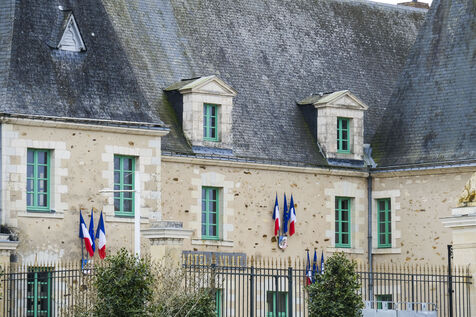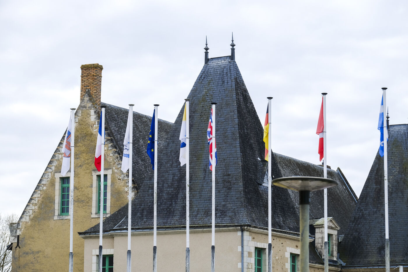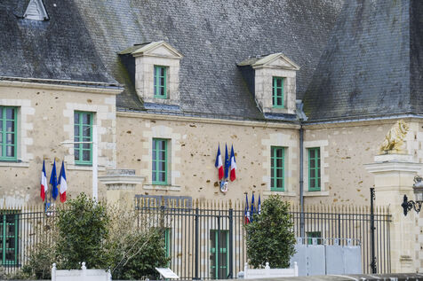 FRANCE, LA FLÈCHE. 31 March 2026. Unlike several mayors elected under the National Rally (RN) banner in the last elections, Romain Lemoigne, Mayor of La Flèche, has not yet removed the European flag from the front of the town hall. A move supported by senior figures in the far-right party and branded as “populism” by the government. Photographer: Jean-Michel Delage/Hans Lucas
