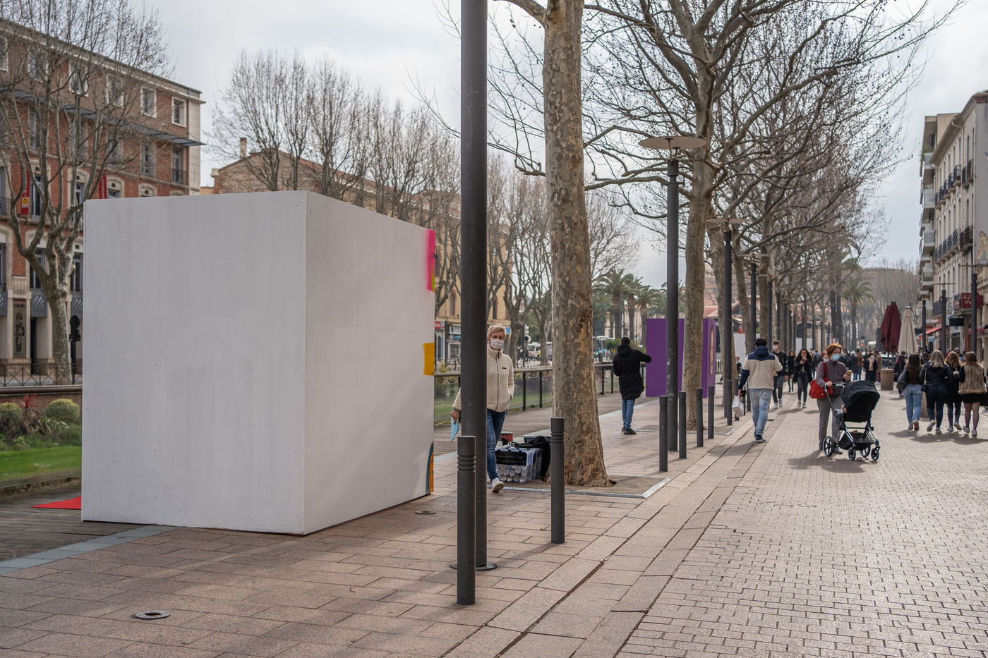 The Perpignan town hall launches the operation "L'art prend l'air" to support culture by opening the city to artists. In particular, local street artists have been invited to create works on huge cubes exhibited in the city centre.