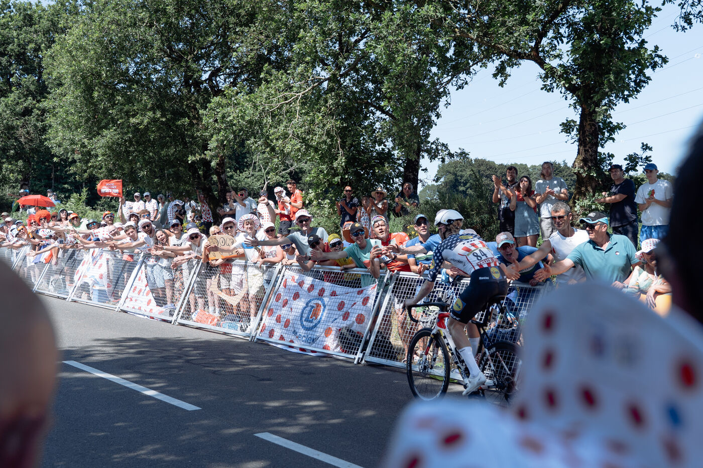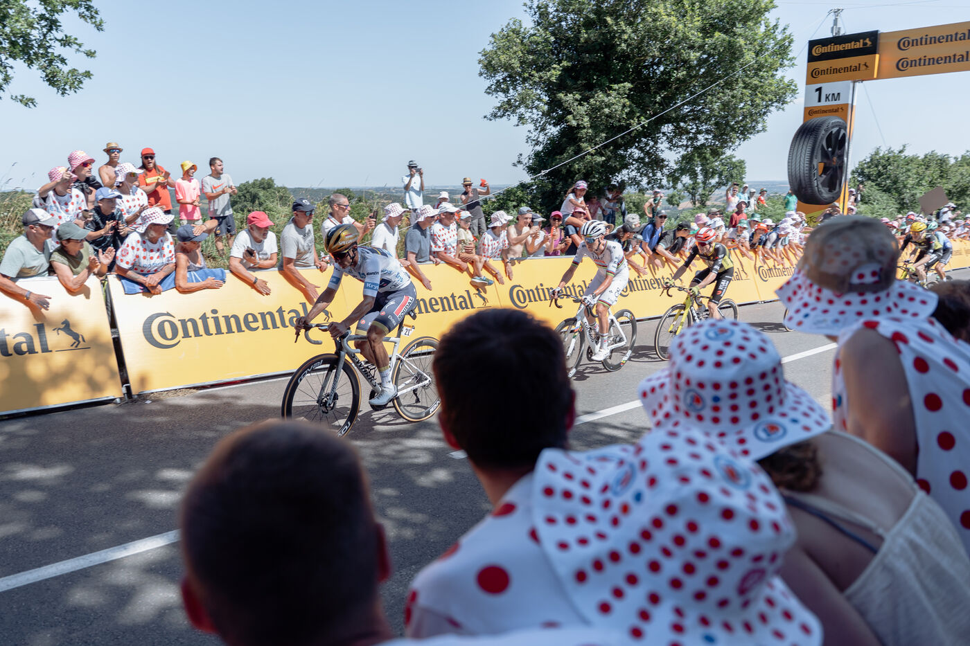 Mur-de-Bretagne in a white jersey with red polka dots