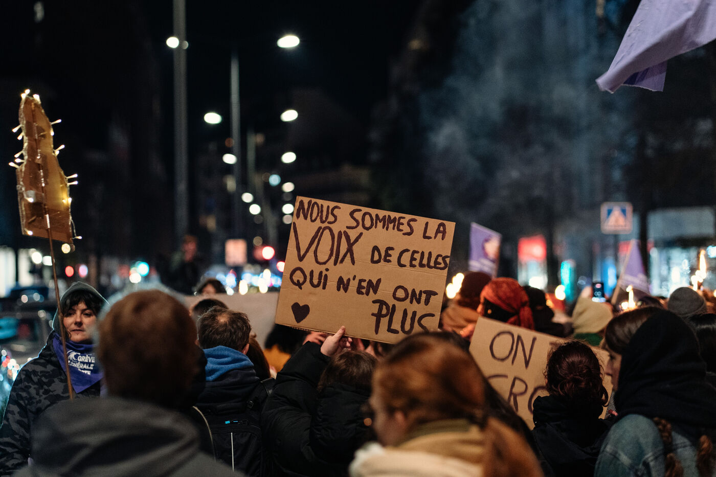 Des centaines de personnes ont participé à une marche aux flambeaux à Rennes, mardi 25 novembre, à l'occasion de la Journée internationale de lutte contre les violences sexistes et sexuelles.