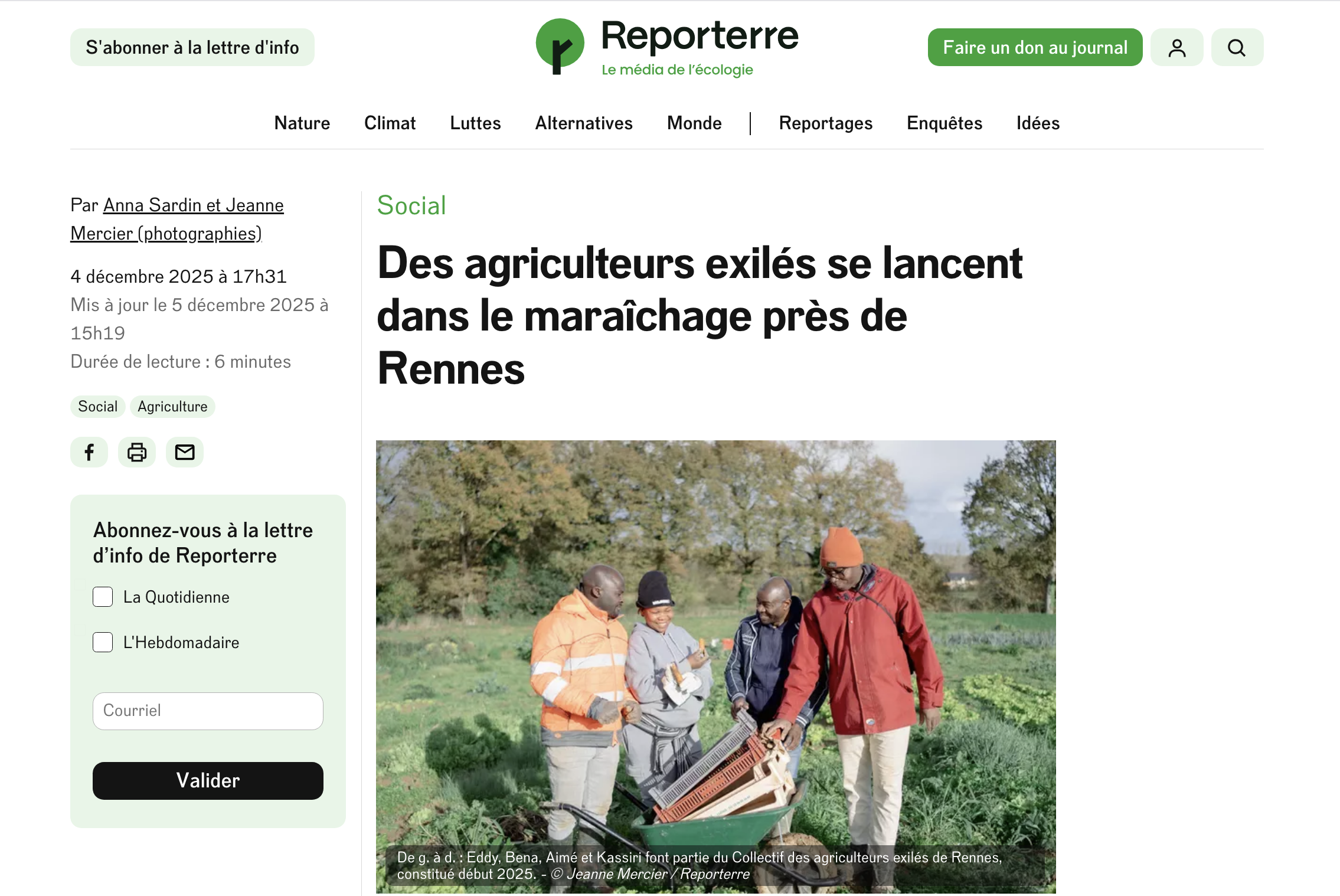 Jeanne Mercier Publications Séries / Archive Culture — Environnement — Grand Ouest — Politique — Société — Spiritualité — Sport Sélection de séries Le Monde - 13/01/2026 Reporterre - Novembre 2025 Le Pèlerin - octobre 2025 Ca m'interesse - Septembre 2025 Washington Post - 26.07.2025 Libération - 02.07.2025 Télérama - 09.04.2025 Libération - 17.03.2025 De Standaard - 26.10.2024 Les Echos - 16.05.2024 Reporterre - avril 2023 Le Parisien - 28.07.2022 Alternatives économiques - 04.2022 Marianne - 26.11.2021 Le figaro - 22.07.2021 L'Humanité - 15.07.2021 Néon - 06.2021 La Croix du Midi - 28.05.2021 Le Figaro - 26.05.2021 Stratégies - 29.04.2021