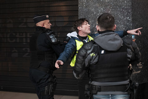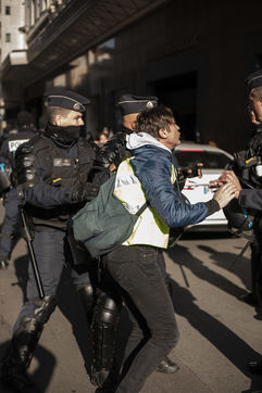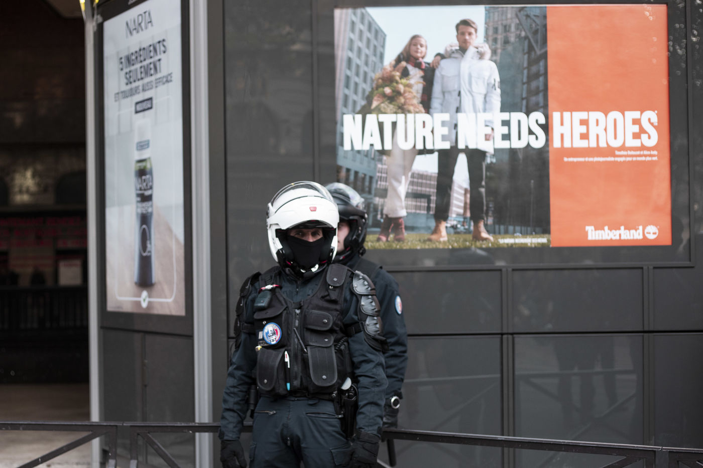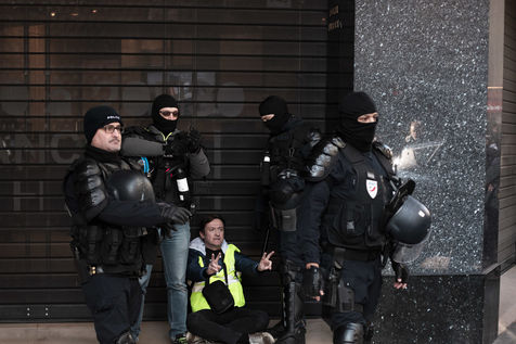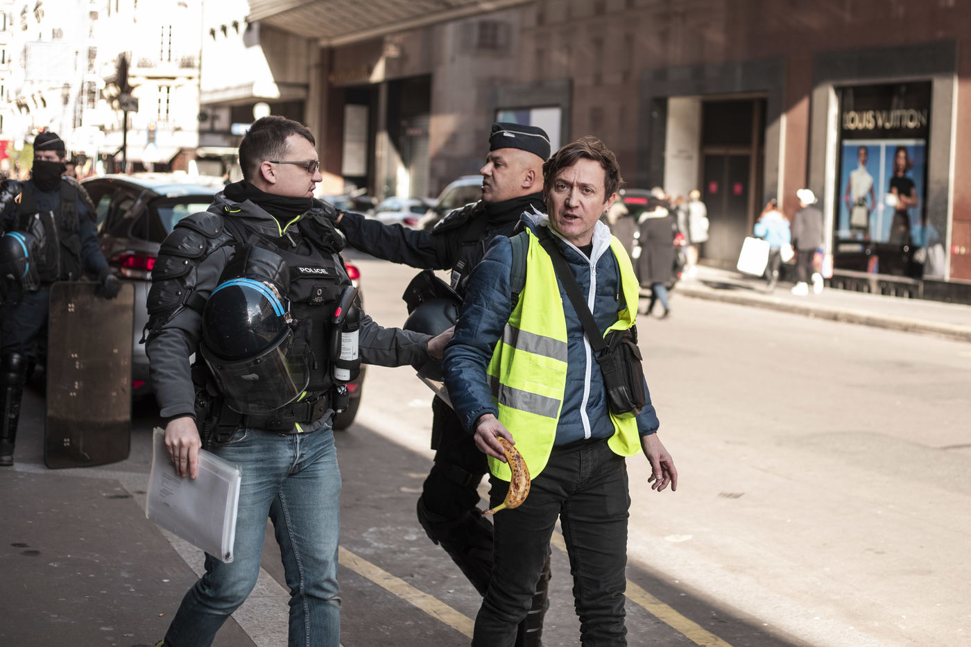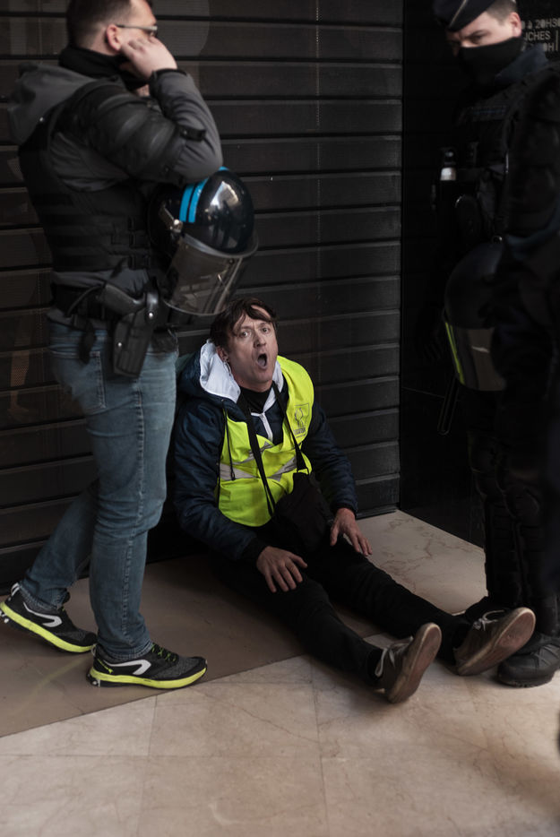 Une dizaine de gilets jaunes ont occupé brievement le premier étage des Galeries Layette, boulevard Haussmann à Paris le dimanche 17 novembre. Mais ont été vite délogés par les forces de l'ordre.