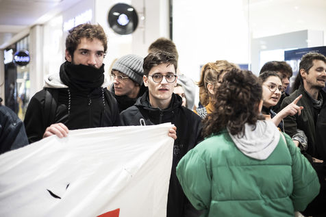 Le mercredi 29 novembre, des centaines de militans ont envahi le centre commercial de la Defense pour protester contre le black friday.