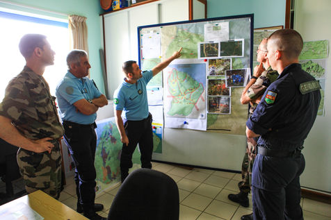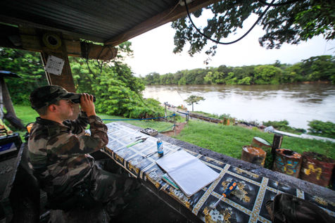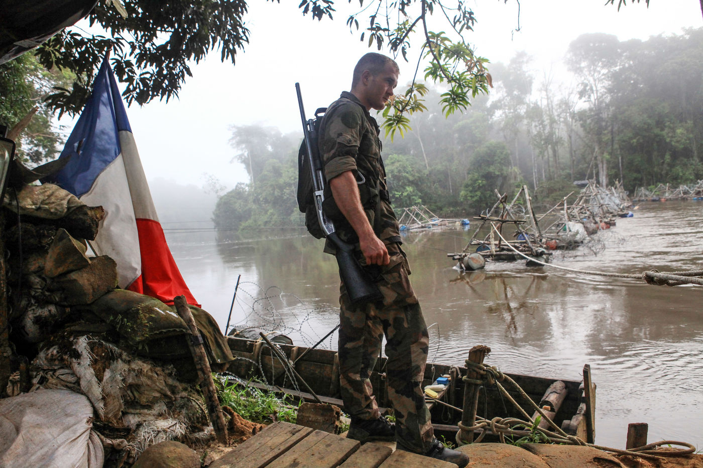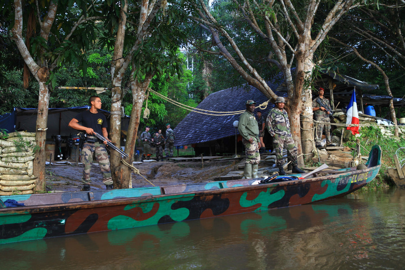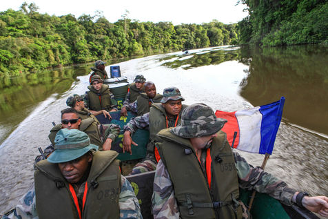 Pour mener à bien leur mission, les militaires se sont partagés le département : huit millions d'hectares de forêt vierge à surveiller et à fouiller. L'ouest, le fleuve Maroni et la frontière avec le Surinam pour les Marsouins du 9ème RIMa (régiment d'infanterie de marine) ; l'est, le fleuve Oyapock, la frontière avec le Brésil pour les légionnaires du 3ème REI (régiment étranger d?infanterie). Et des deux côtés, accompagnant chaque patrouille, des gendarmes, seuls habilités à procéder aux interpellations de clandestins et à la destruction des milliers