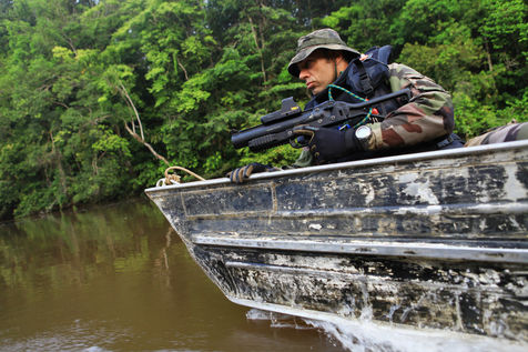 Decided in the month of February 2008 by the president of the Republic, reinforced then perennialized two years later in the month of February 2010, the Harpie operation - name of a diurnal raptor, although Harpie also indicates in Greek mythology, the three girls of Thaumas, goddess of devastation and revenge - currently mobilizes in Guyana nearly seven hundred gendarmes and soldiers in the most important operational mission carried out on the national territory since the Libération. On July 10th, 2010, the 1st class Julien Giffard, 25 years, paid besides its life the commitment of the armed forces in Guyana (FAG) in this tropical war which they deliver to the clandestine gold washers. During a river control, its dugout approached by the gold traffickers wavered and the soldier of the 1st RI of Sarrebourg rocked in tumultuous water of the Tampock river. Its lifeless body was found a little later downstream from the point of collision. He is the first dead of the Harpie operation.