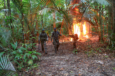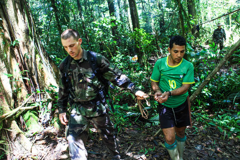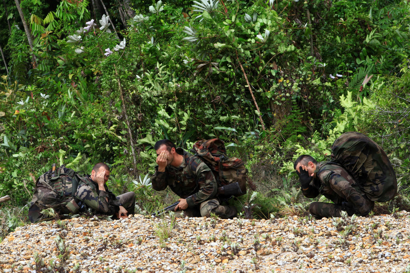 Légionnaires et Marsouins ont acquis et développé des savoirs faire spécifiques à la vie, austère et exigeante, que réclame la forêt équatoriale. Ils sont notamment capables de se projeter à pied dans les zones les plus inhospitalières et les plus inaccessibles du département. Ils peuvent vivre en totale autonomie des semaines durant, bâtissant au détour de criques boueuses camps de fortune et postes avancés. Ils prélèvent dans la flore et dans la faune, aquatique et terrestre, la maigre pitance qui leur permet de survivre. « C'est une vie très rustique, affirme fièrement le chef Moreno, du 3ème REI. Mais c'est aussi l'unique moyen de lutter efficacement contre les orpailleurs qui se cachent de plus en plus profondément dans la forêt. Nous n'avons pas le choix : il faut les débusquer là où ils se planquent même si cet endroit se trouve au milieu de l'enfer vert. »