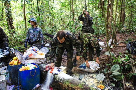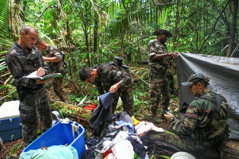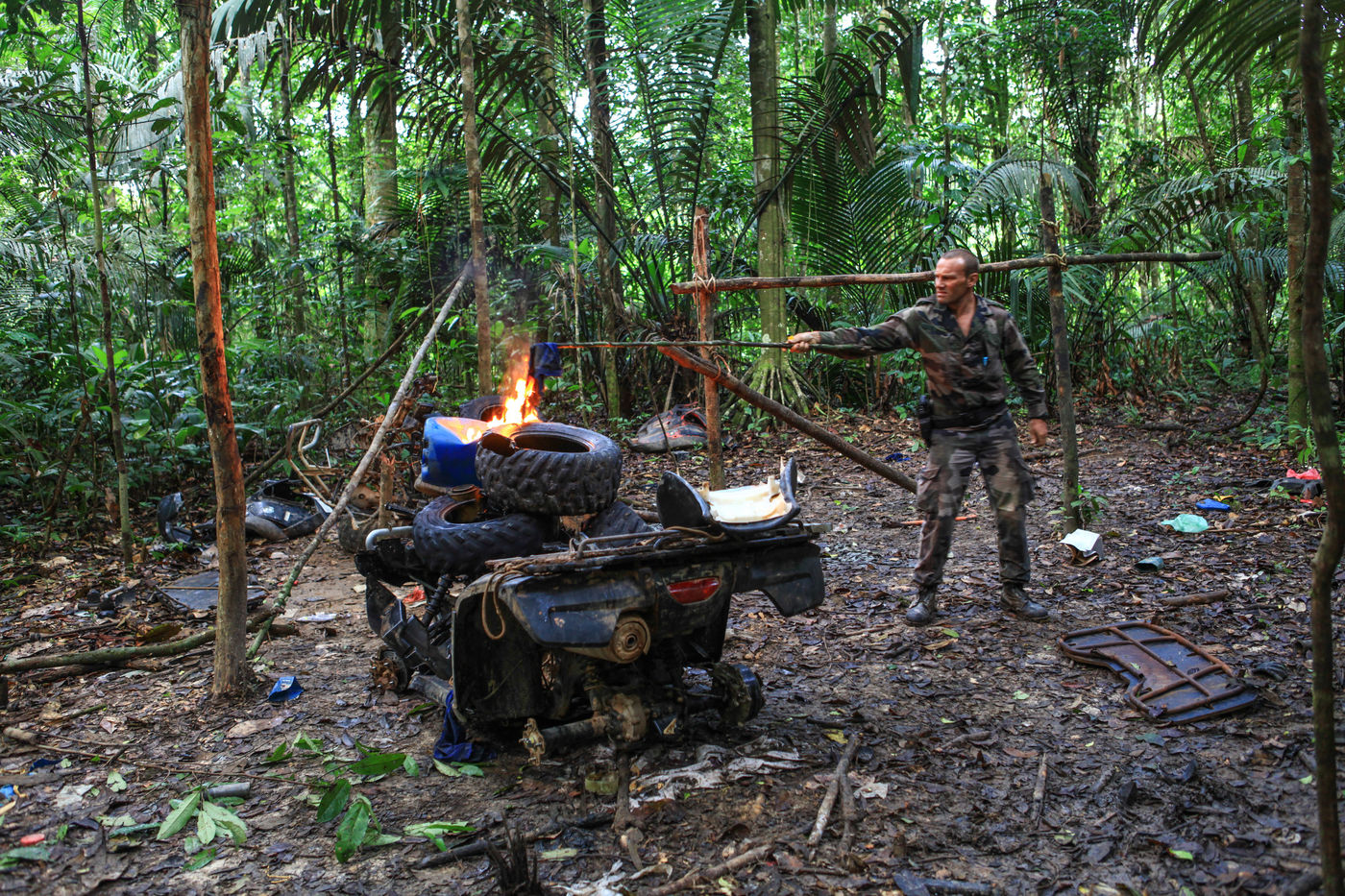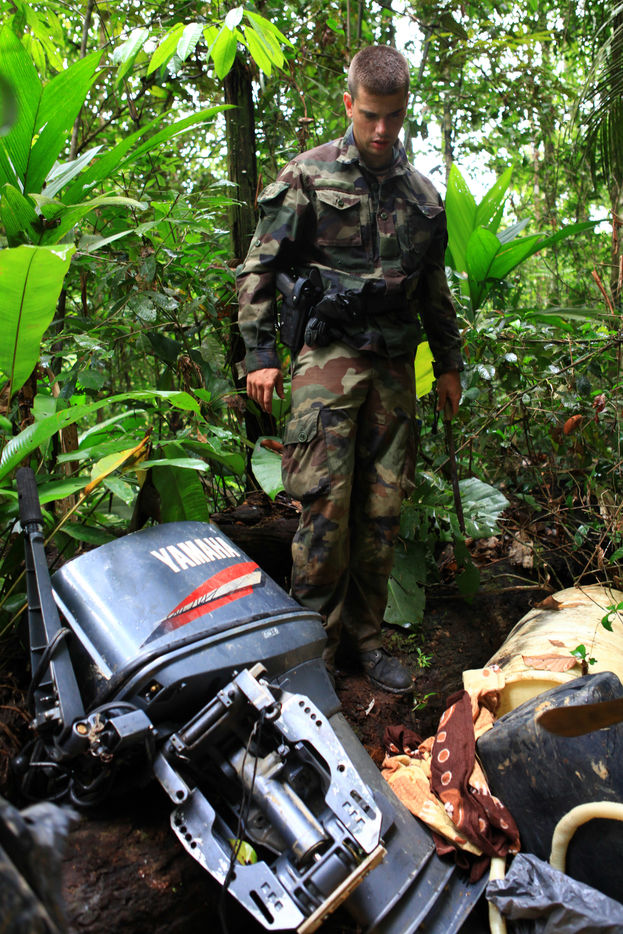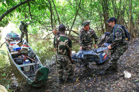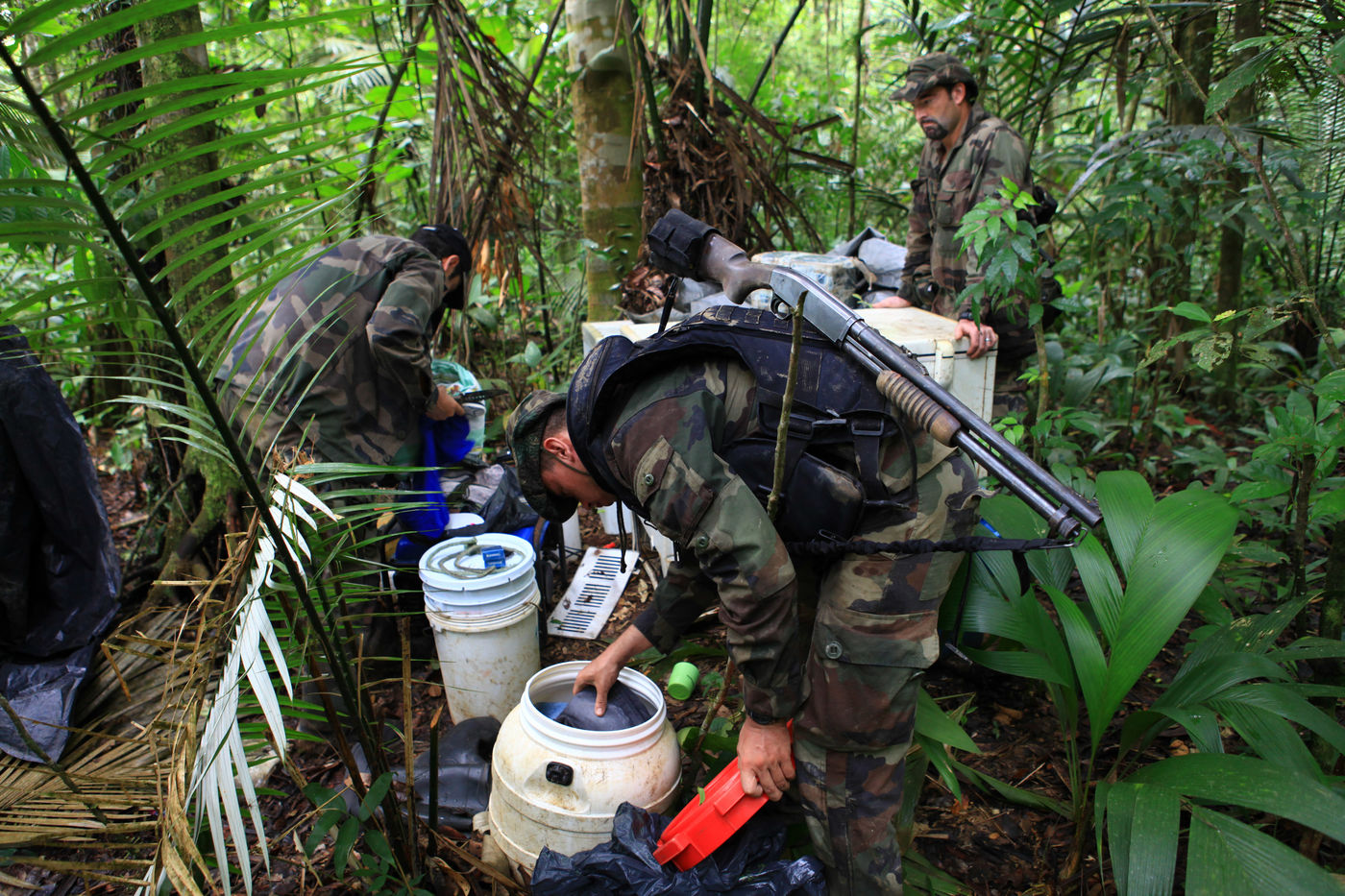 To conclude their mission, the soldiers shared the department: eight million hectares of virgin forest to be supervised and excavate. The west, the Maroni river and the border with Suriname for the Marsouins of 9th RIMa (regiment of marine infantry); the eastside, the river Oyapock, the border with Brazil for the legionaries of the 3rd REI (foreign regiment of infantry). And on the two sides, accompanying each patrol, the gendarmes, alone abilited to proceed to the interpellations of the clandestine ones and the destruction of the thousands of tons of food products and materials, seized each year. In bulk and for the only year 2010: 289 dugouts, 218 engines of outboard motor boat, 145 quads, 106 vehicles, 292 tons of food, 663 pumps, engines and breakers, 320000 liters of fuel, 30 km of pipes and 110 kg of mercury were seized or destroyed these last months. « While crossing and by disturbing flows of supply, we slow down the activity de facto and the output of the illegal sites » are delighted gendarmes and soldiers with each new successes.