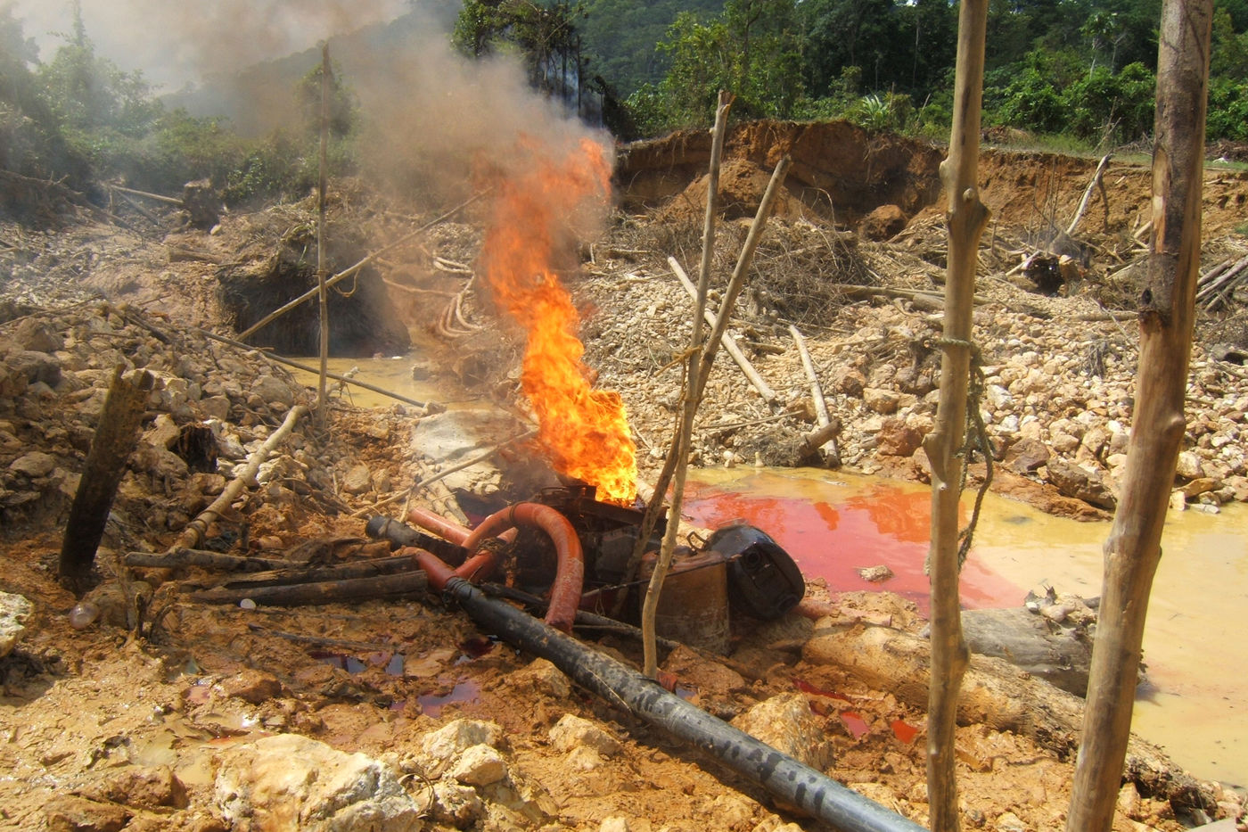 « A 34 € le gramme, l'or attire chaque jour de nouveaux candidats à la fortune putative. » Le lieutenant-colonel de gendarmerie Lacan soupire : « entre 5000 et 8000 garimpeiros, majoritairement brésiliens, travaillent illégalement dans la forêt, alimentant un gigantesque trafic au milieu de la jungle. Les chercheurs d'or installent de véritables villages d'orpailleurs qu'il faut nourrir, ravitailler et divertir. » En 2010 une centaine de sites ont été démantelés et détruits dont certains possédaient épicerie, restaurant, hôtel, atelier de mécanique, discothèque et même maison close. « Nous luttons à la fois contre l'exploitation frauduleuse de l'or guyanais mais aussi contre des réseaux de prostitution, des filières de contrebande acheminant vivres et matériels, parfois armes et stupéfiants et contre la pollution engendrée par l'orpaillage » poursuit Jean-Michel Lacan. Pour amalgamer les précieuses paillettes de métal jaune, les garimpeiros utilisent du mercure, hautement toxique, qui s'infiltre ensuite dans les sols et se dilue dans les eaux. Régulièrement, la DDASS de Kourou (direction départementale des affaires sociales et sanitaires) démontre que certains poissons notamment l'aïmara et le piraye, régulièrement consommés par les Amérindiens autochtones, présentent des teneurs en métaux lourds exagérément élevés. De très nombreux chantiers d'extraction sont situés dans le Parc amazonien de Guyane, une zone d'exclusion protégée, théoriquement interdite d?accès sans autorisation expresse du préfet et réservée aux seules tribus Emerillons et Wayanas. « Il en reste moins de mille dans toute la Guyane, précise l'officier de gendarmerie. Ils vivent encore de pêche et de cueillette. L'une des finalités de l'opération Harpie est aussi de protéger ces populations et préservant leur environnement. Nous devons d?abord chasser les orpailleurs du parc amazonien de Guyane. »