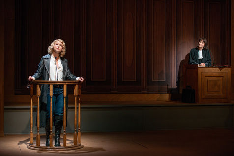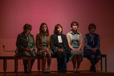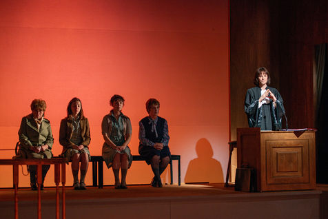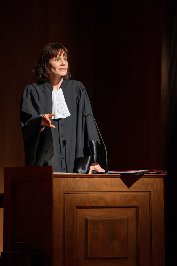 HORS LA LOI, texte et mise en scène de Pauline Bureau, scénographie d'Emmanuelle Roy au Vieux Colombier de la Comédie-Française, du 24 mai au 7 juillet 2019, avec Claire de La Rüe du Can, Coraly Zahonero, Françoise Gillard, Martine Chevallier, Martine Chevallier, Sarah Brannens, Daniele Lebrun, Laurent Natrella et Alexandre Pavloff.