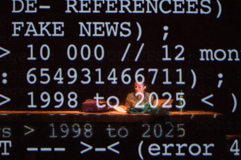 DATA MOSSOUL, texte et mise en scène Joséphine Serre, au Petit Théâtre de la Colline, Théâtre National à Paris du 18 septembre au 12 octobre 2019. Avec Guillaume Compiano, Camille Durand-Tovar, Elsa Granat, Estelle Meyer, Édith Proust, Aurélien Rondeau et Joséphine Serre.
