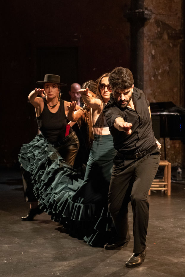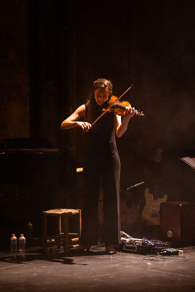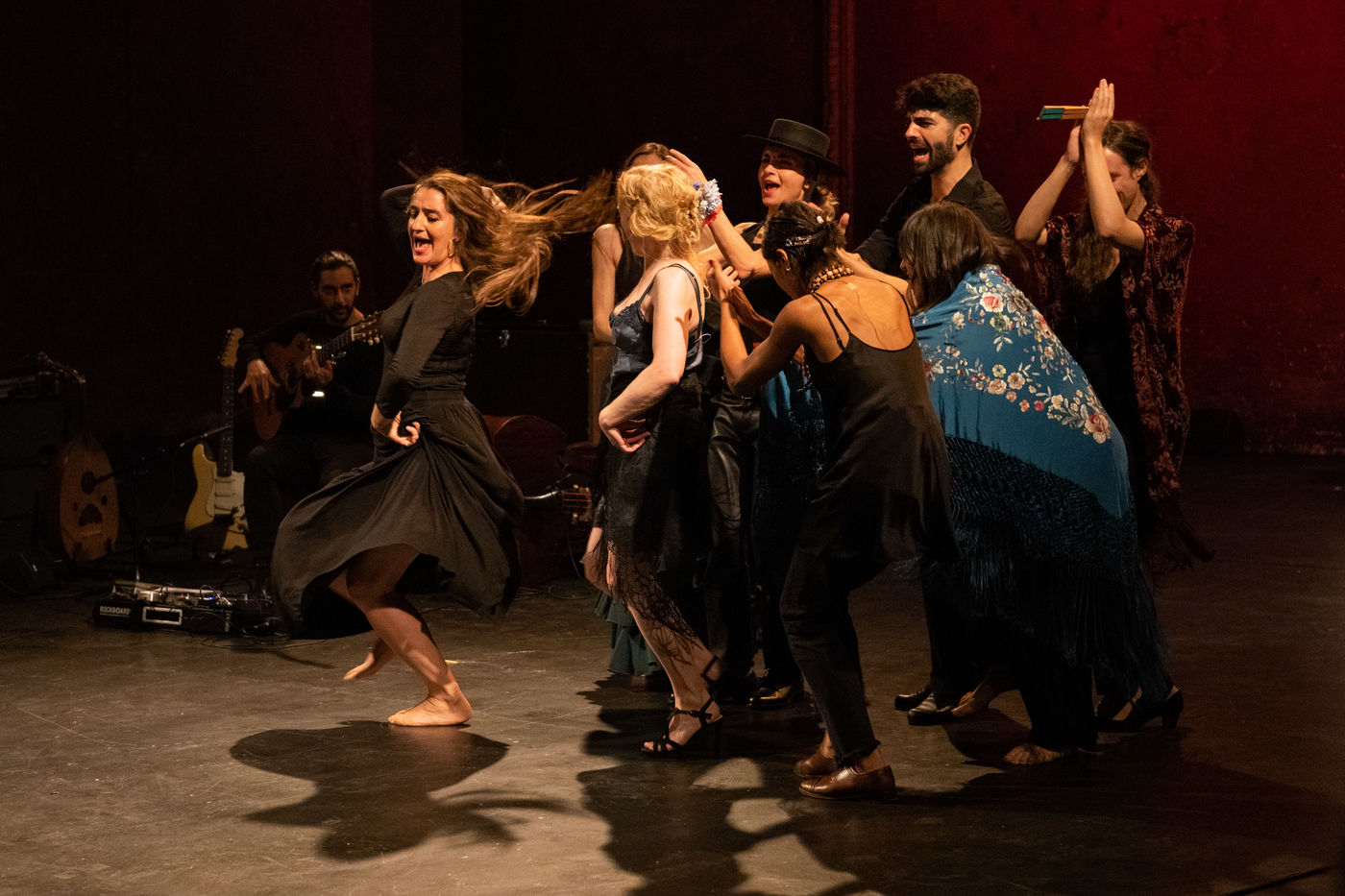 France, Paris, 2020-10-25. Andando, piece de theatre, mise en scene par Daniel San Pedro aux Bouffes du Nord. Avec Aymeline Alix, Audrey Bonnet, Zita Hanrot, Camélia Jordana, Estelle Meyer, Johanna Nizard, Liv Heym, Pascal Sangla et M hamed el Menjra.