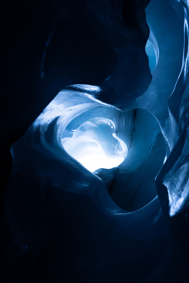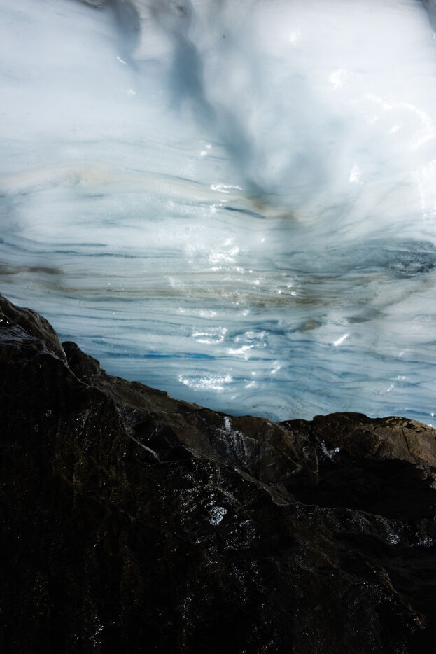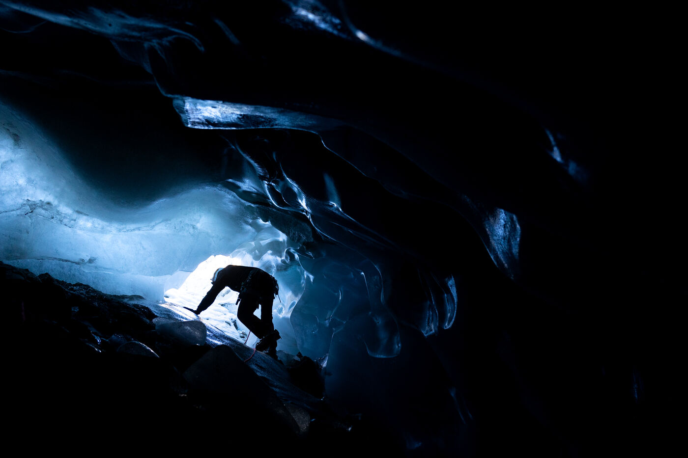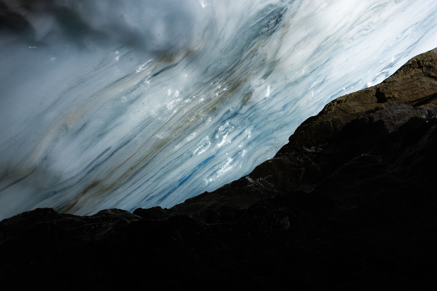 On November 2, 2024, as part of a documentation project on glacial moulins in the Alps, we carried out a descent beneath the Saint-Sorlin Glacier in the Grandes Rousses range. After rappelling down several ice shafts, we reached the glacier bed, where rock and ice meet, an underground landscape sculpted by flowing water.