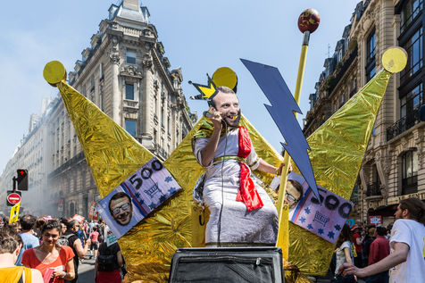A l'initiative, entre autres, du député de la Somme François Ruffin (du Parti "La France Insoumise") une manifestation dite "La fête à Macron" s'est déroulée le samedi 5 mais 2018, à Paris, depuis la Place de l'Opéra jusqu'à celle de la Bastille, dans le but de montrer qu'il existe une forte opposition à la politique du Président français. Des dizaines de milliers de personnes étaient présentes et ont défilé dans une atmosphère assez festive.